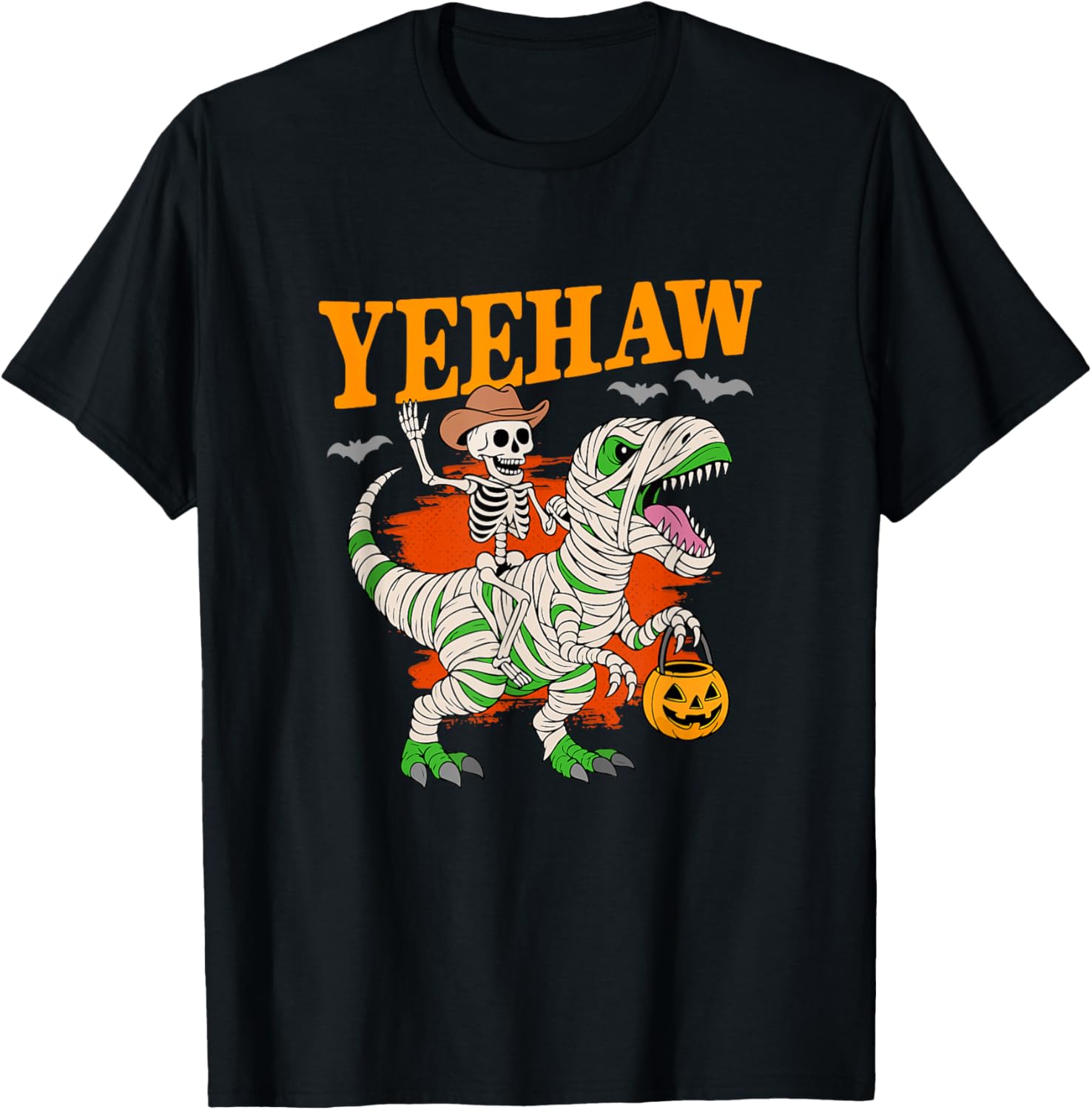 Cowboy Skeleton Riding Dino Funny Halloween T-Shirt