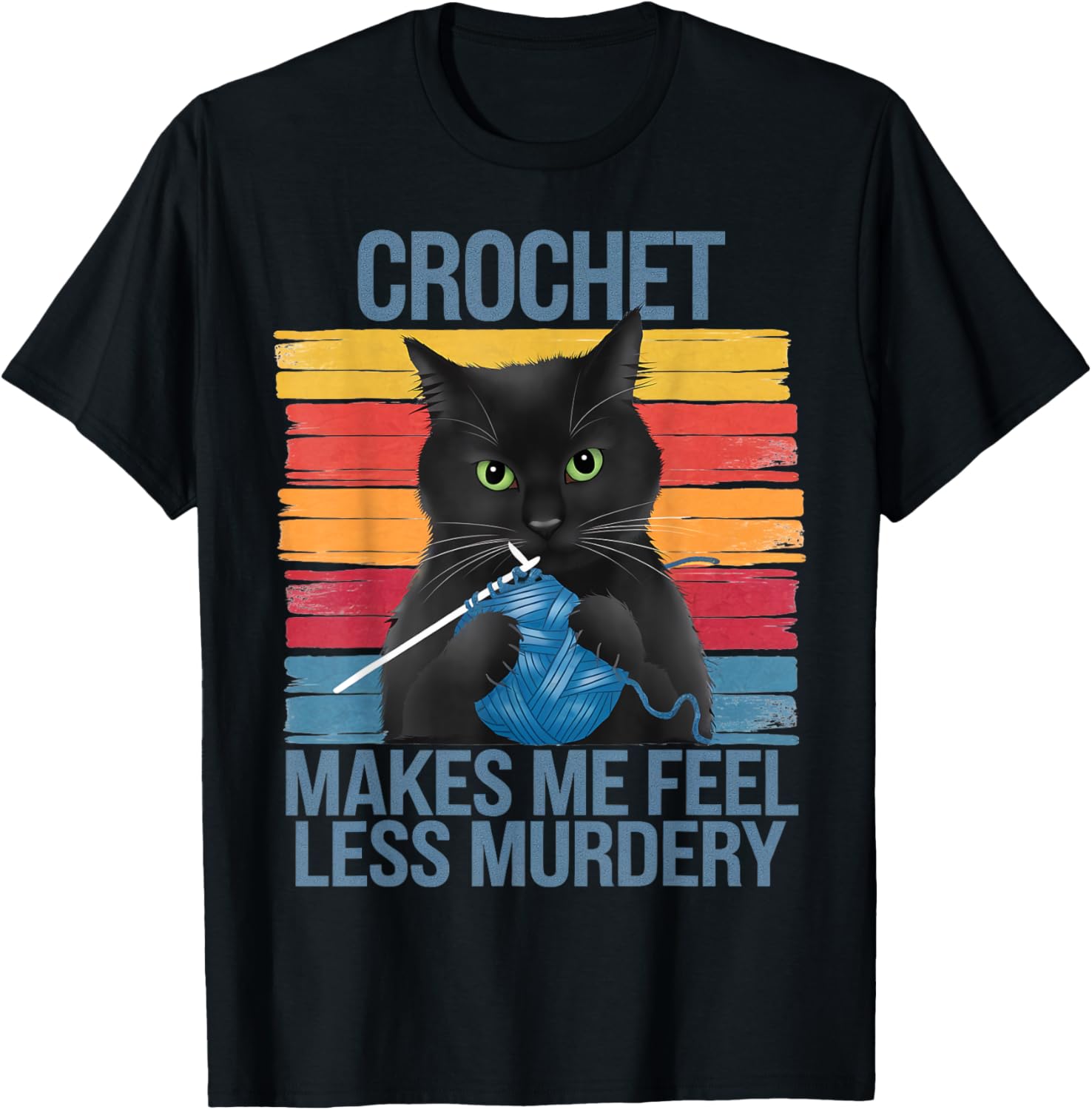 Crochet Makes Me Feel Less Murdery Funny Cat Gifts For Women T-Shirt
