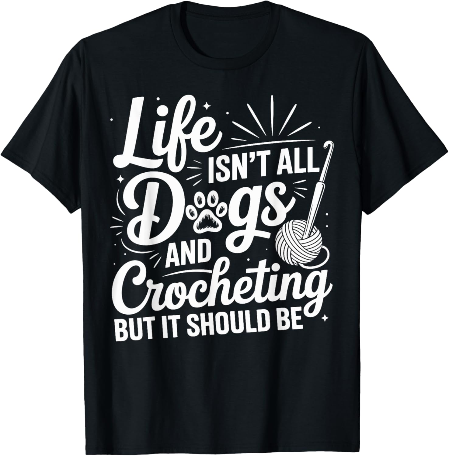 Life Isn't All Dogs And Crocheting Funny Crochet Crocheter T-Shirt