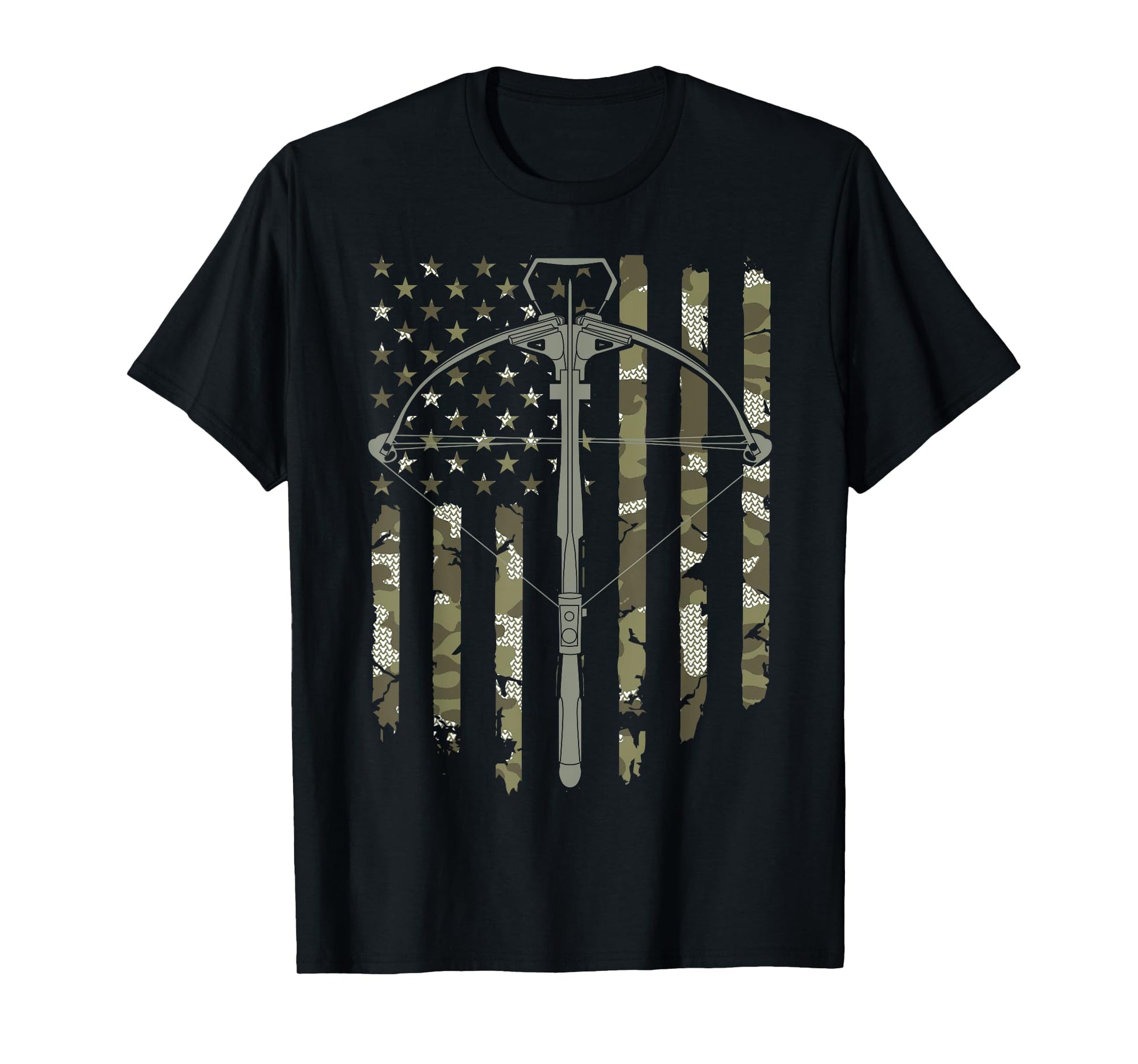 Crossbow Hunting Vintage American Flag Camouflage Women Men T-Shirt