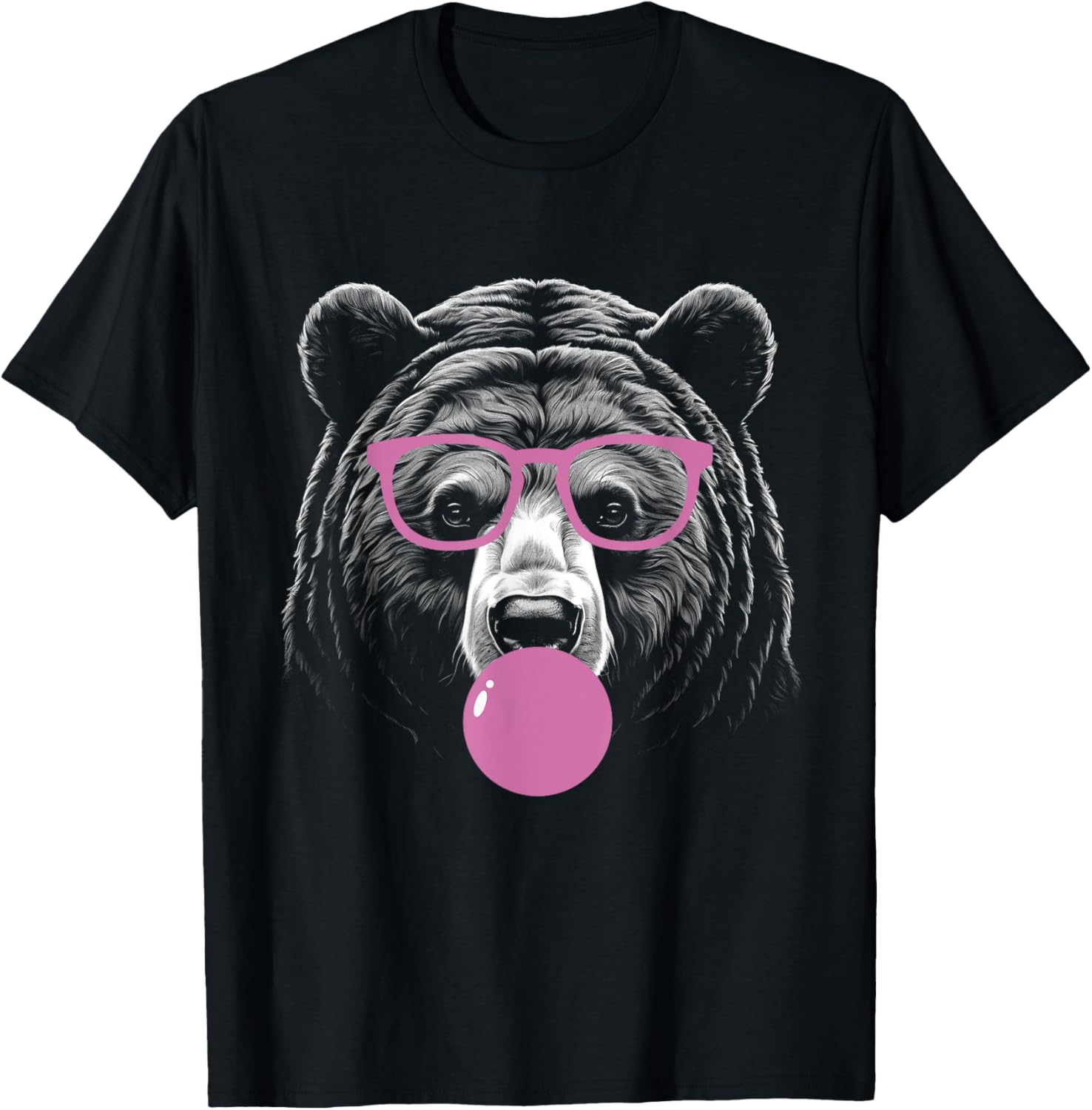 Cute Bear Face Eating Gum And Makes Bubble Funny Bear Women T-Shirt