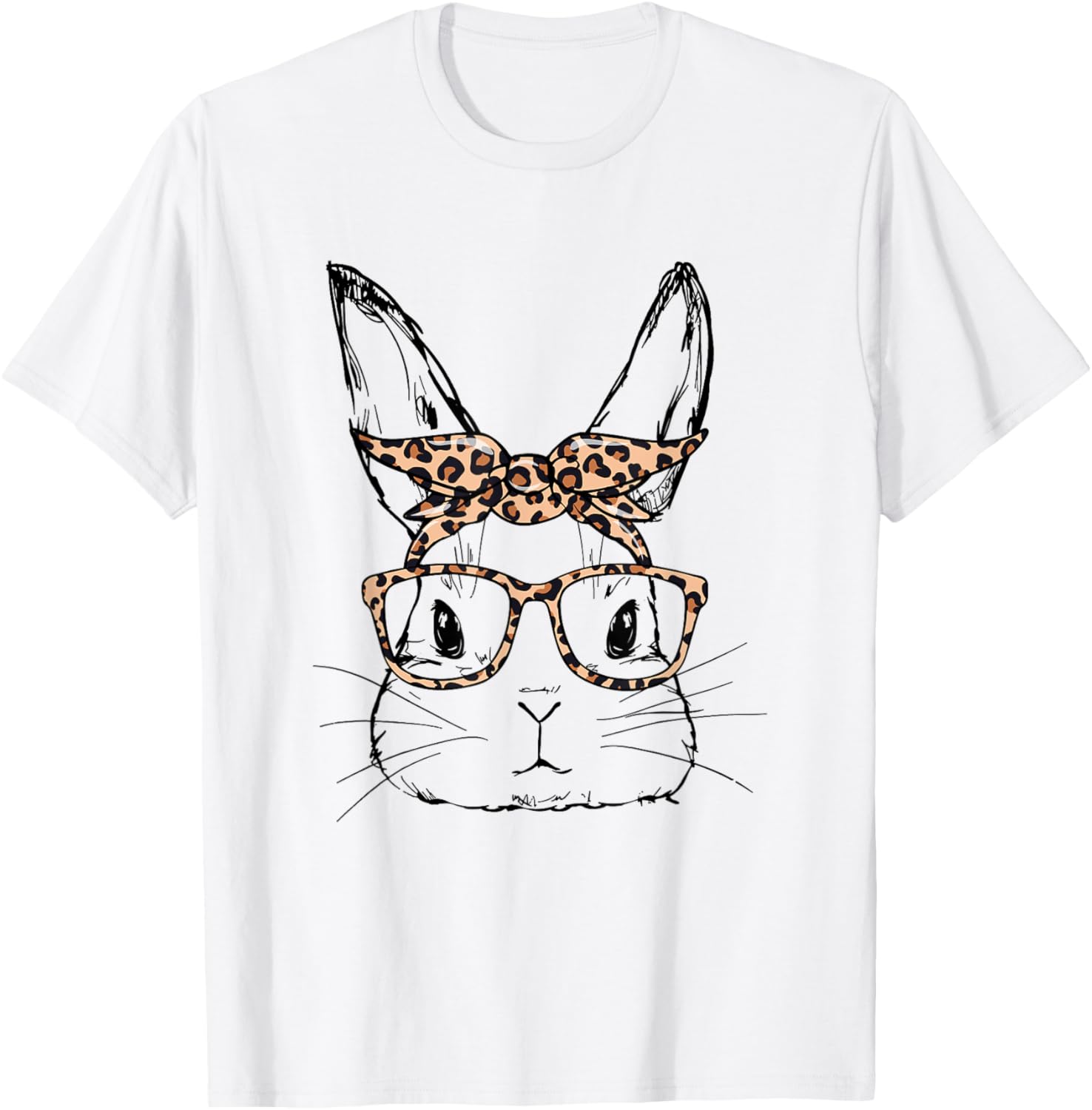 Cute Bunny Face Leopard Glasses Bandana Easter Day Women T-Shirt