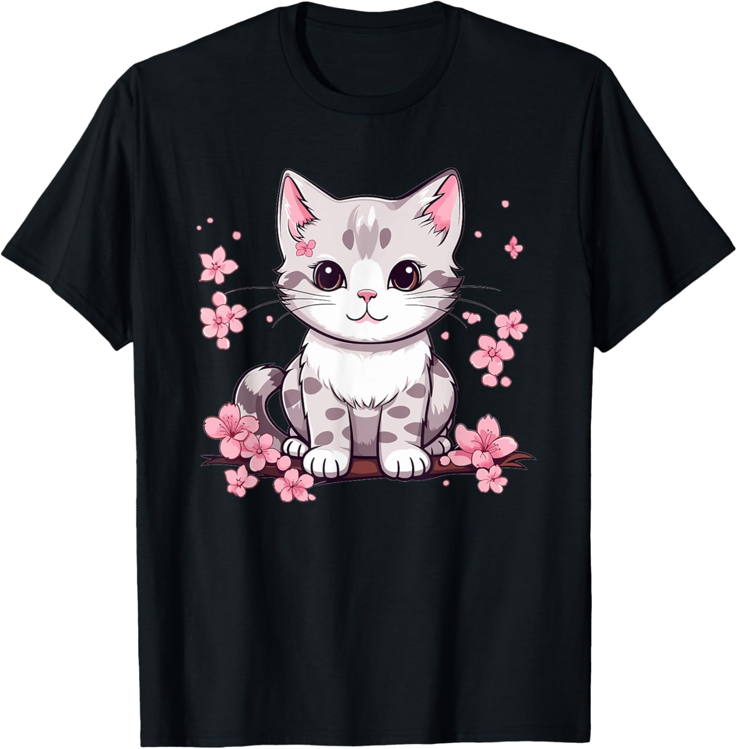 Cute Cat With Cherry Blossoms I Kids Cat T-Shirt