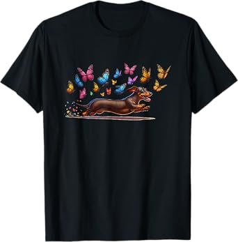 Cute Dachshund With Butterflies Fun Dog Lover T-Shirt