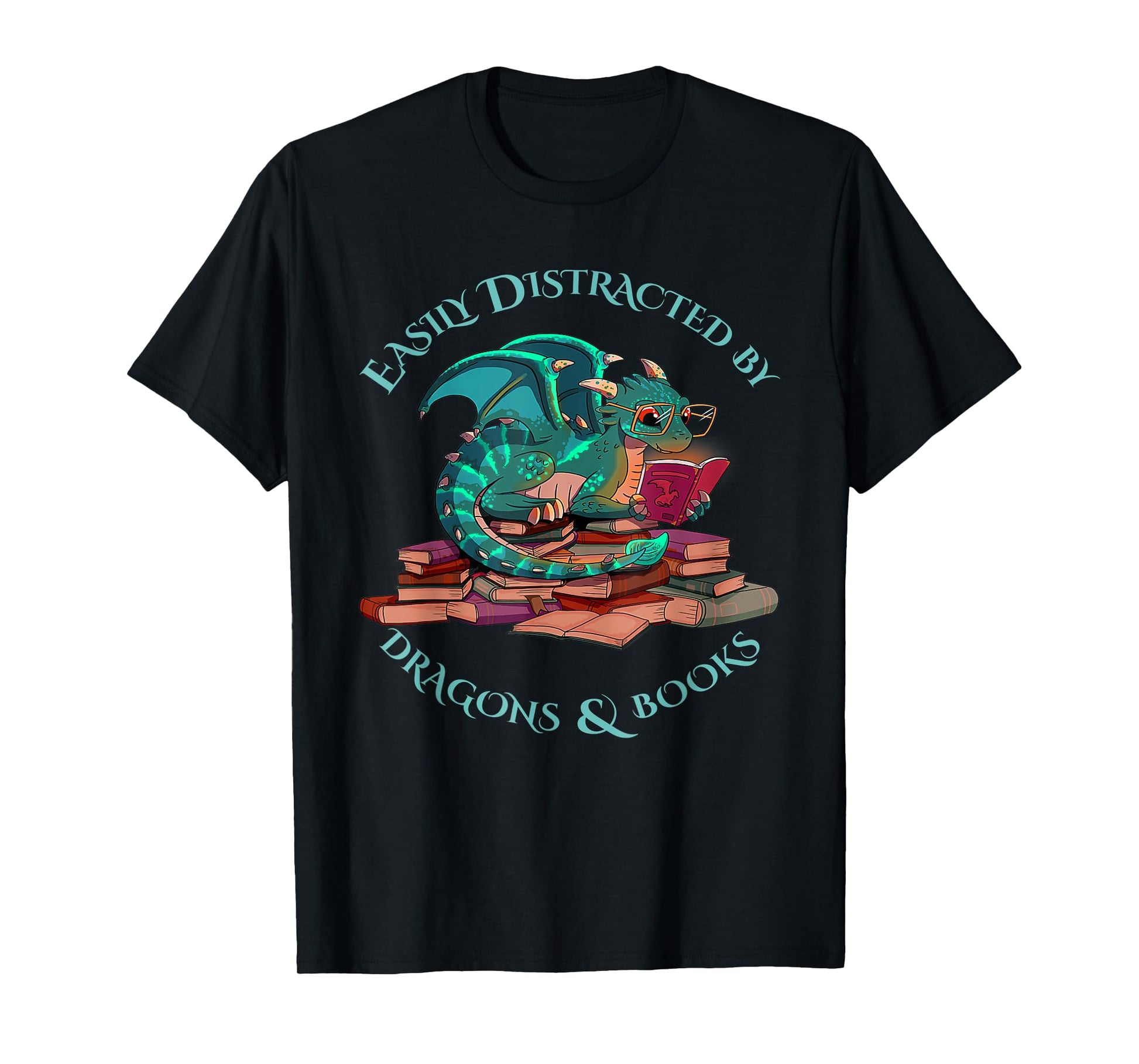 Cute Dragon Book - Easily Distracted By Dragons And Books T-Shirt