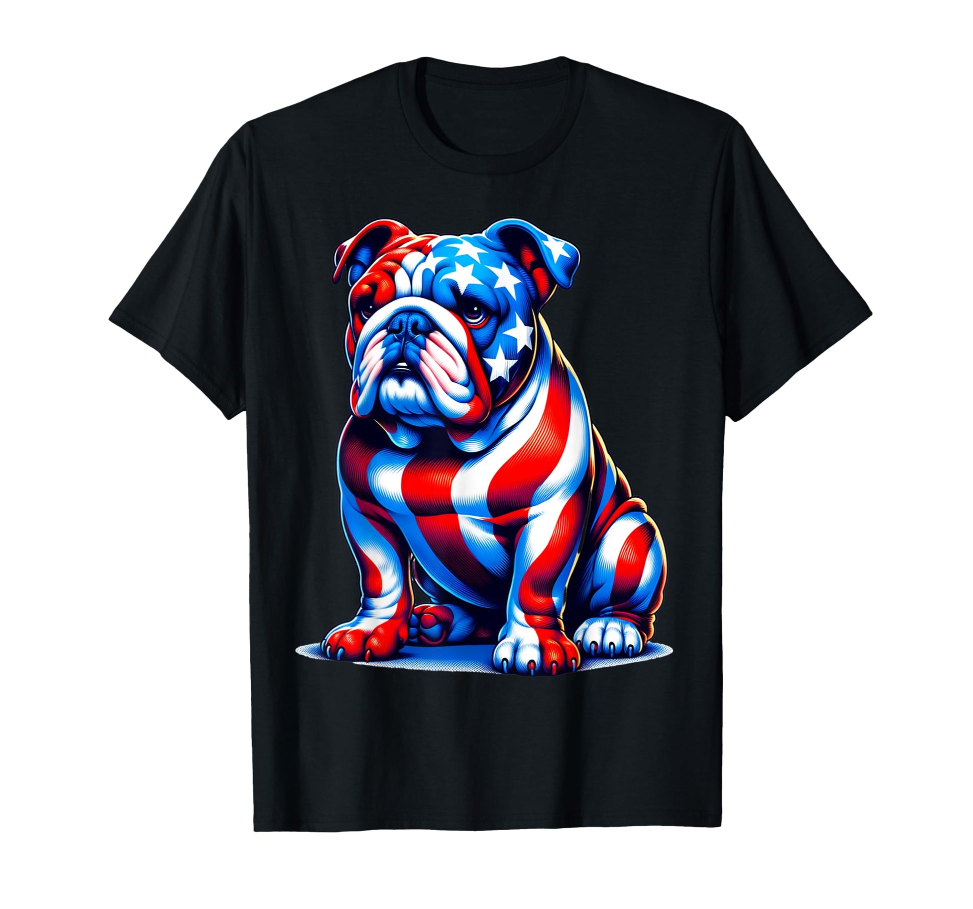 Cute English Bulldog USA Flag Women Dog Lover 4th Of July T-Shirt