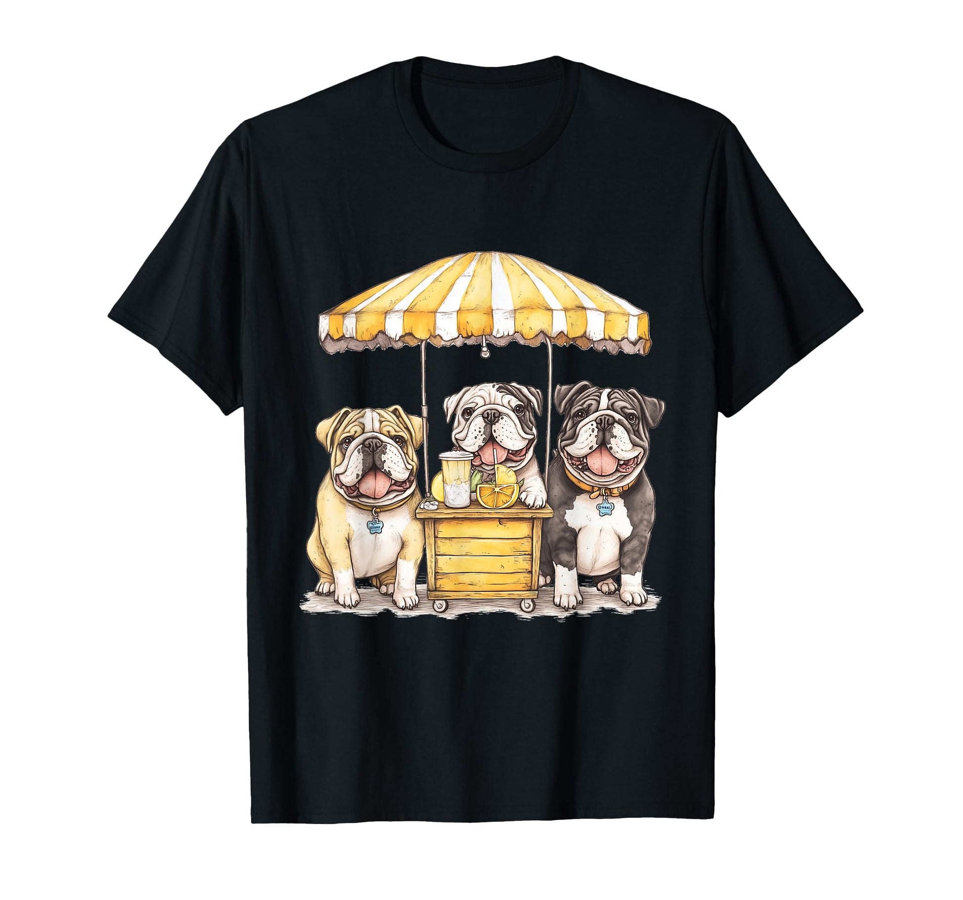 Cute English Bulldogs Running A Lemonade Stand Funny Dogs T-Shirt