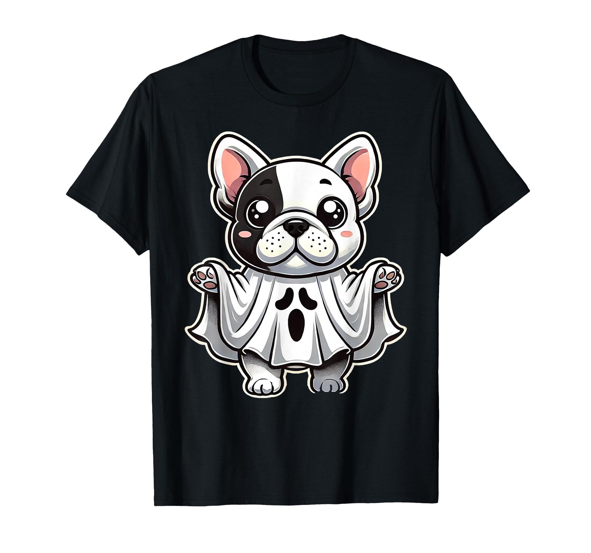 Cute French Bulldog Ghost Costume Puppy Halloween Pup Men Women Kids T-Shirt