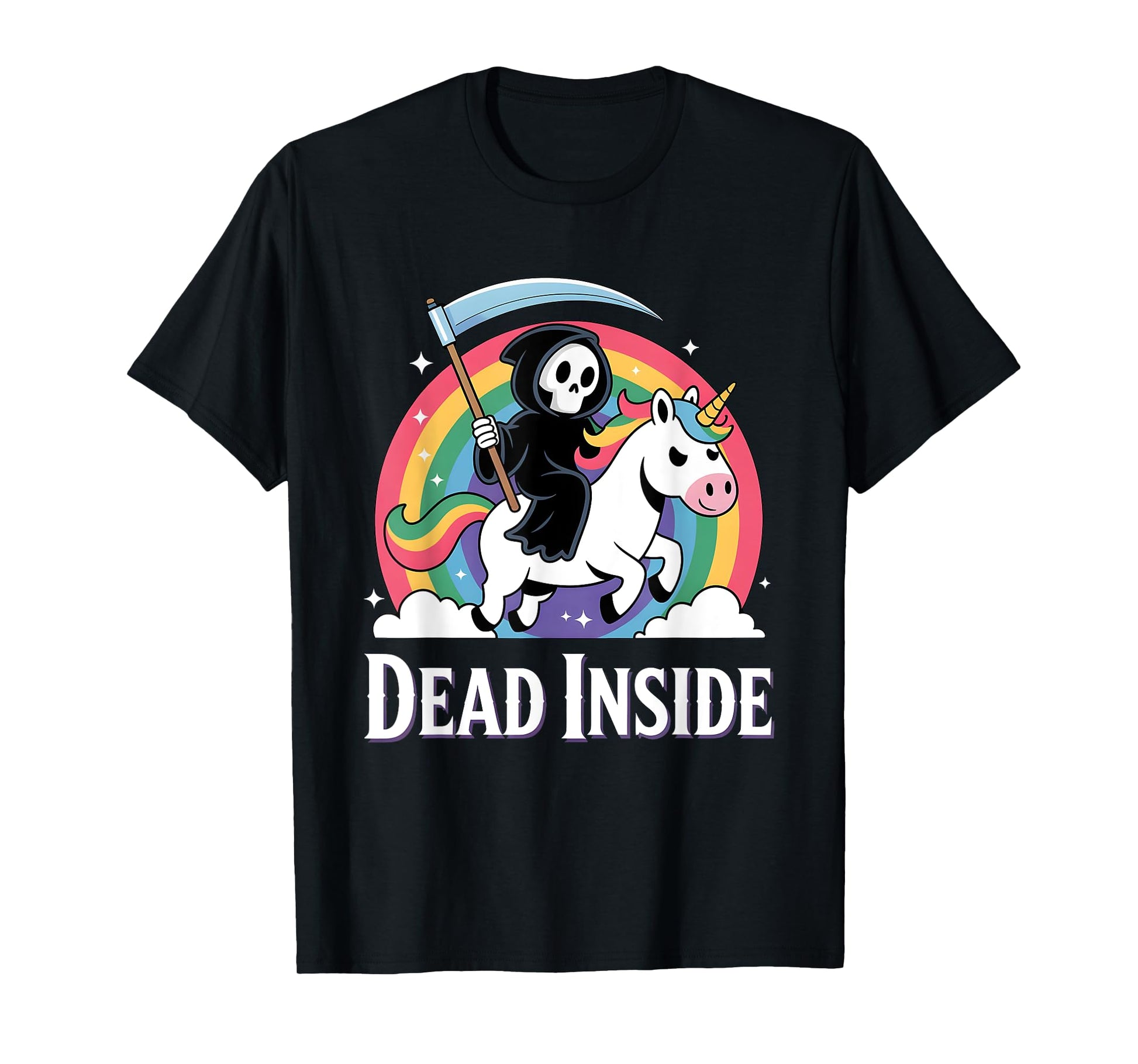 Cute Grim Reaper Rainbow Unicorn Dark Humor Dead Inside T-Shirt
