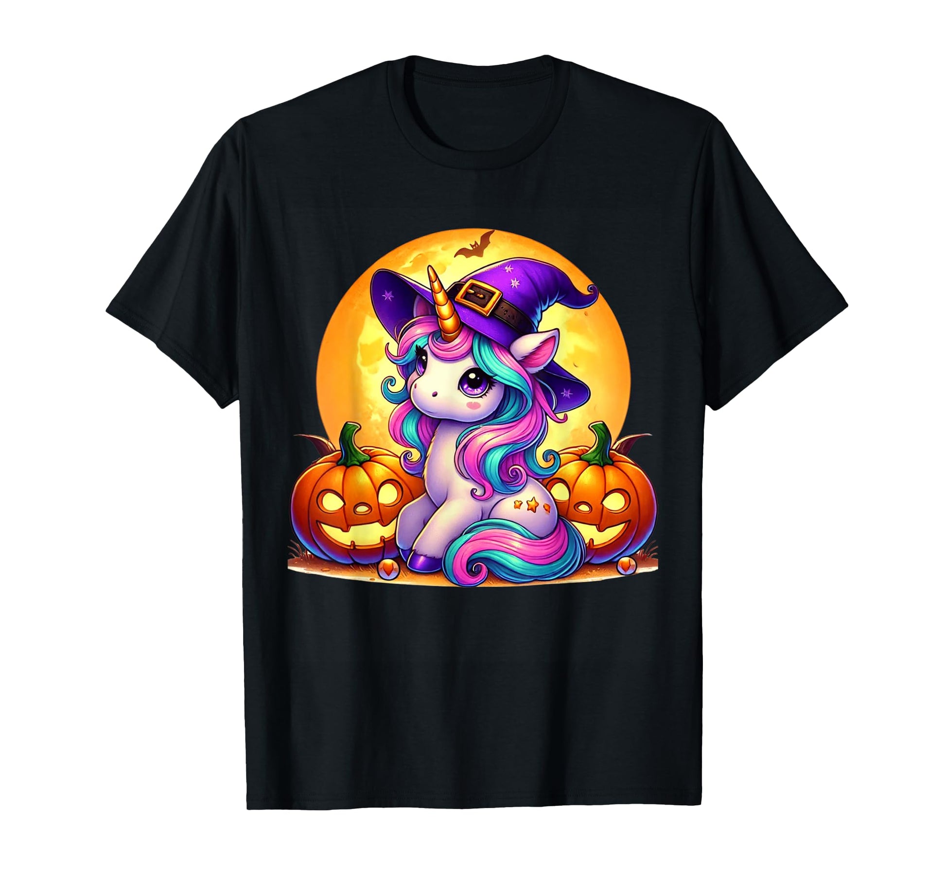 Cute Halloween Unicorn Witch Pumpkin Girls Women School T-Shirt