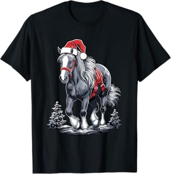 Cute Horse Christmas Santa Hat Xmas Pony Pajama T-Shirt