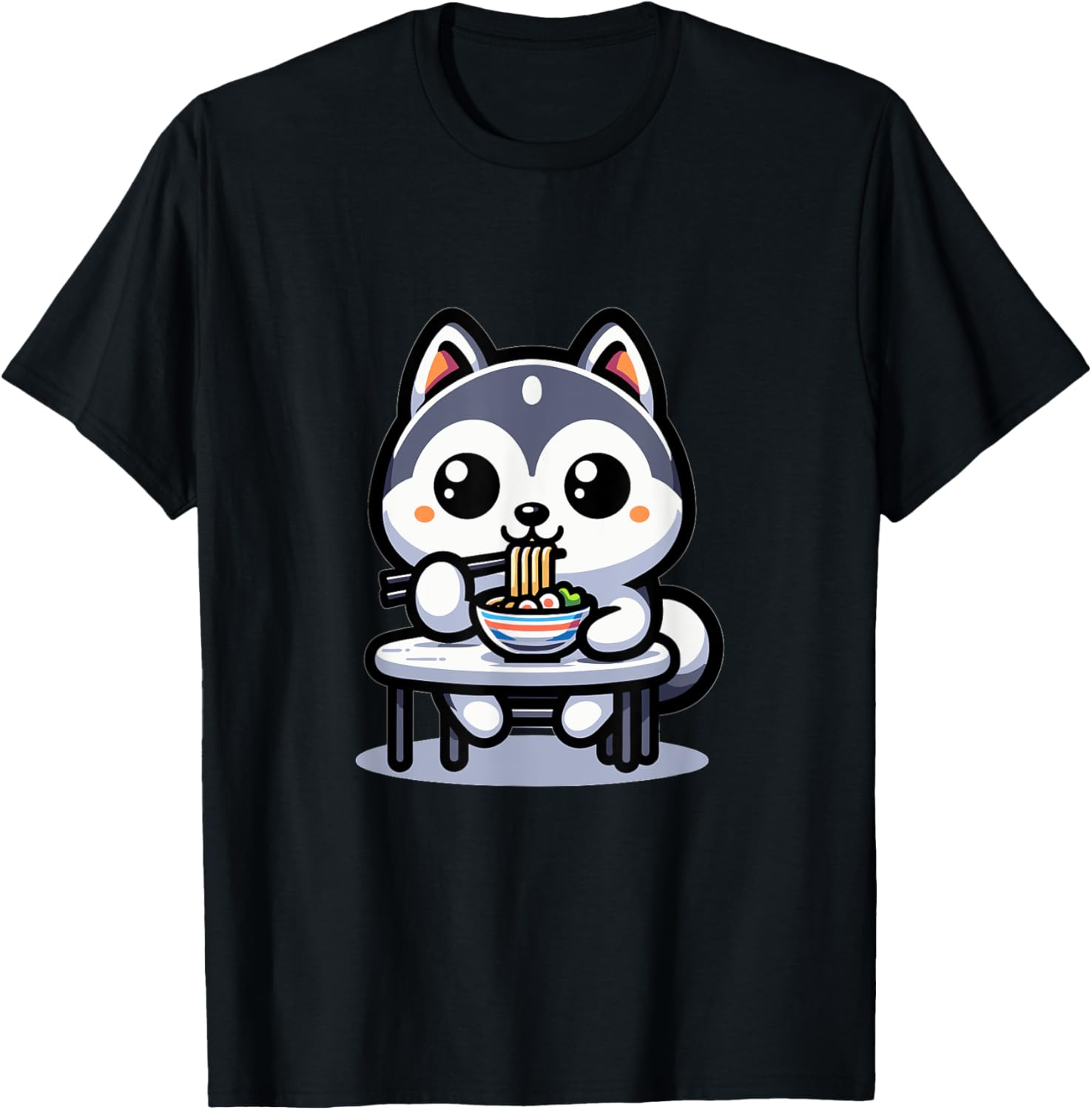 Cute Japanese Kawaii Chibi Siberian Husky Eating Ramen T-Shirt