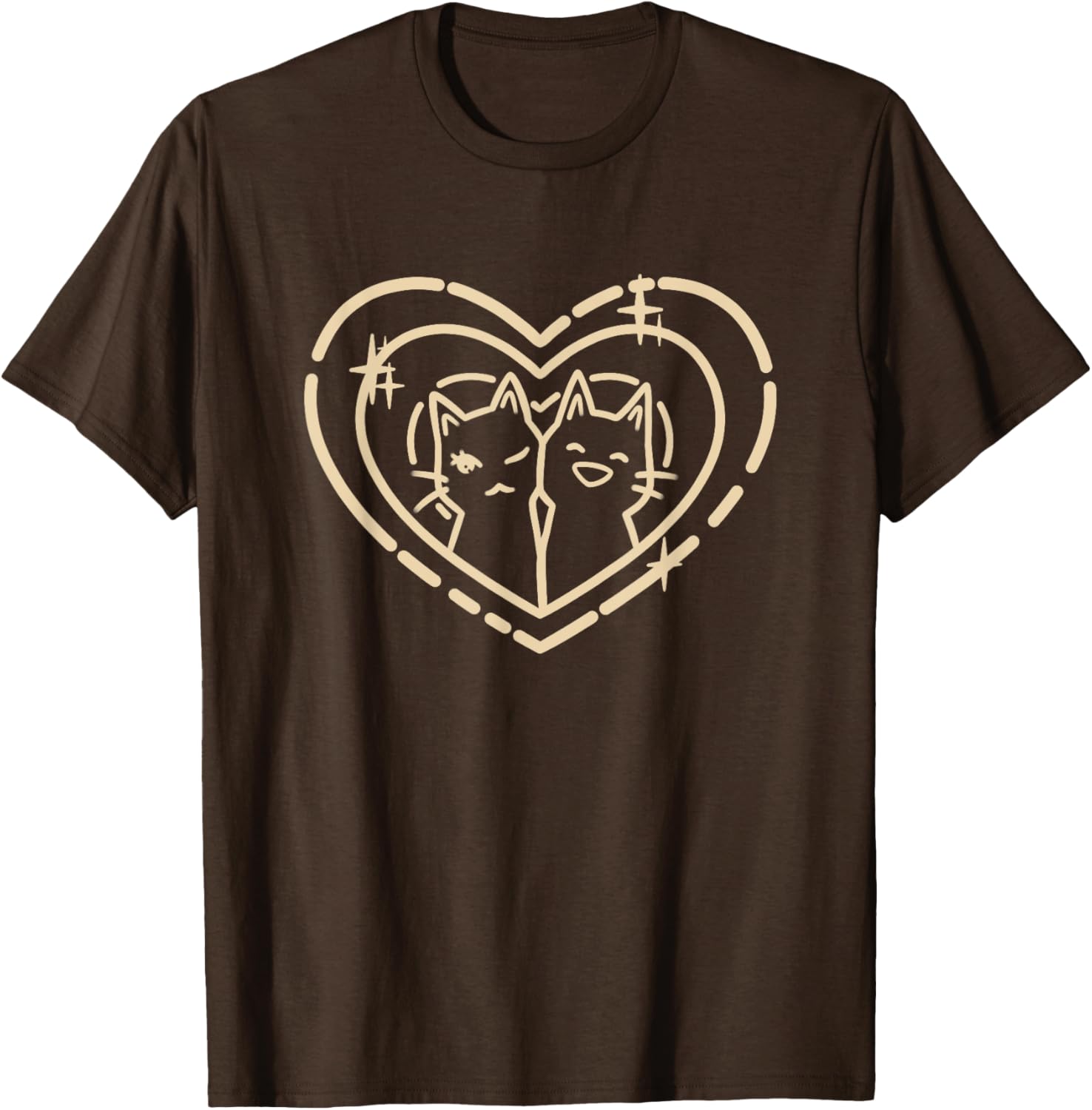Cute Kawaii Y2K Coquette Heart with Cats T-Shirt