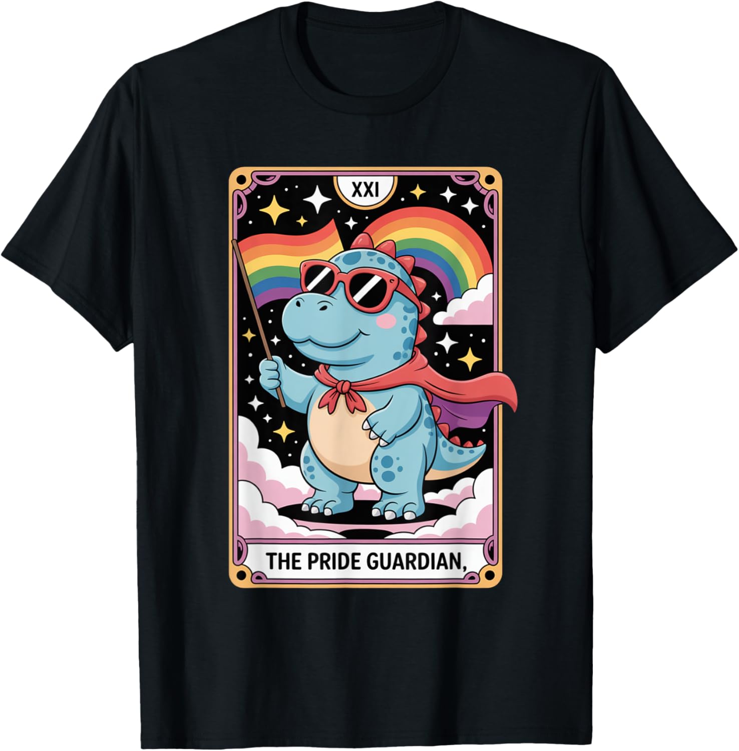 Cute LGBTQ+ Dinosaur - The Pride Guardian Tarot Art for Ally T-Shirt