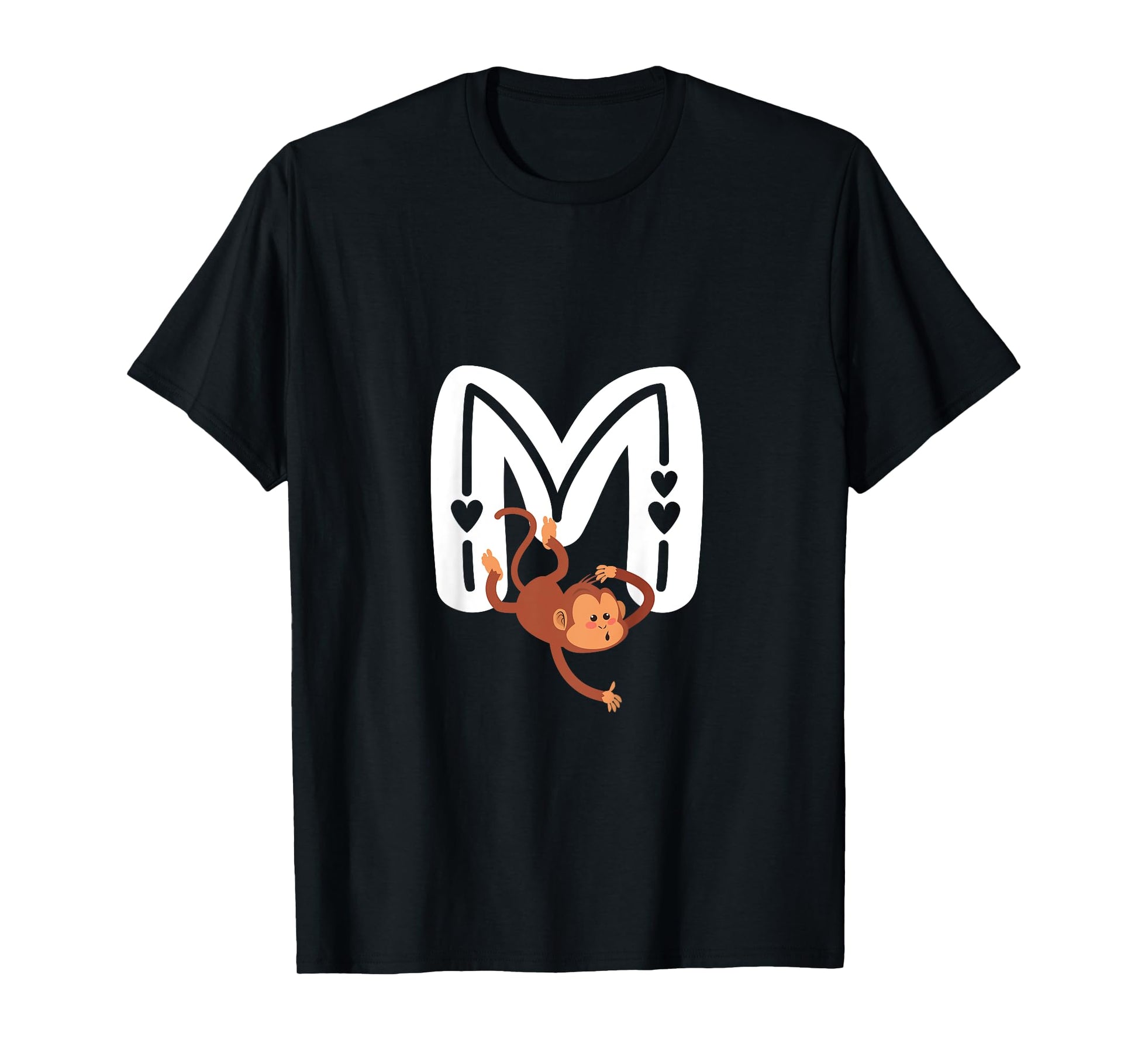 Cute Monkey Letter M Initial Alphabet Monogram Boys Girls T-Shirt