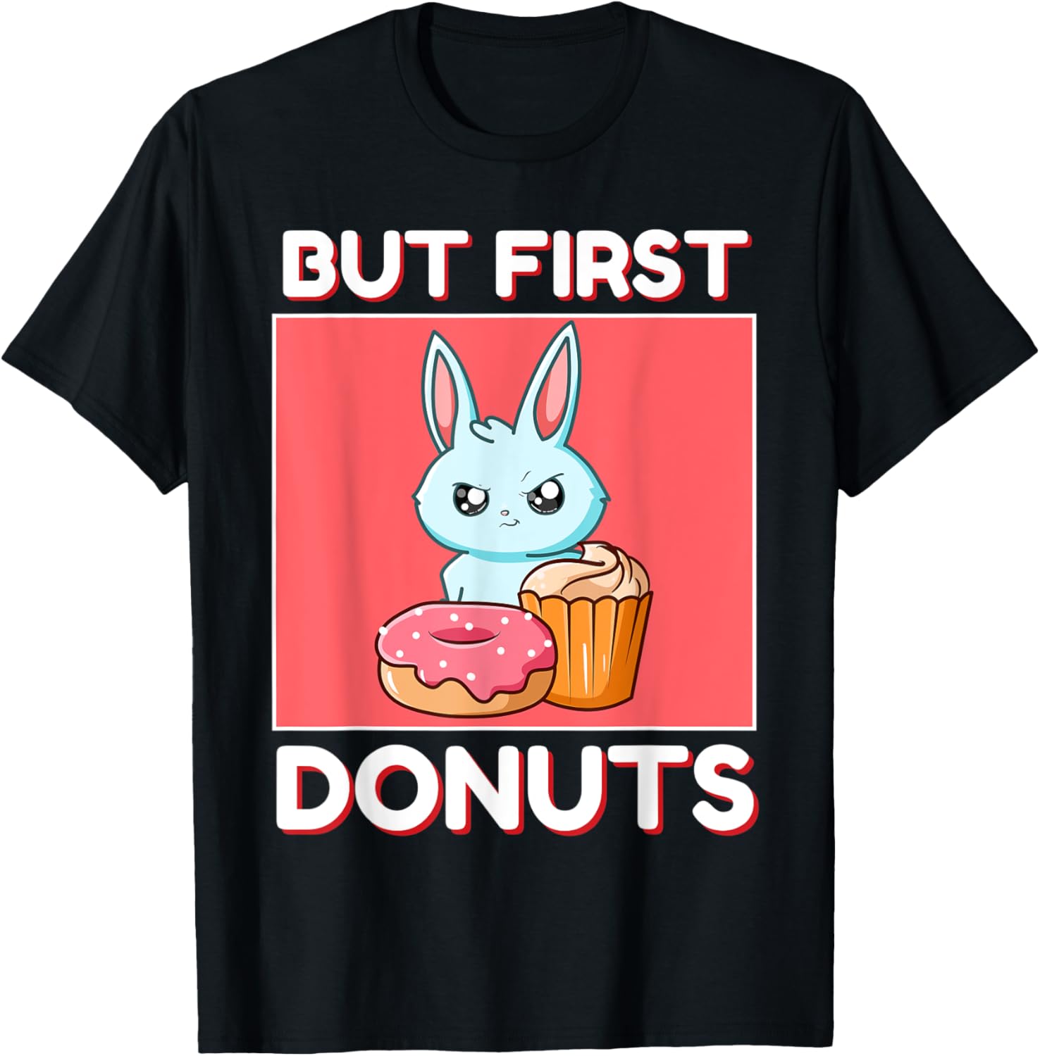 Cute Rabbit But First Donuts And Cupcake Japanese Style T-Shirt