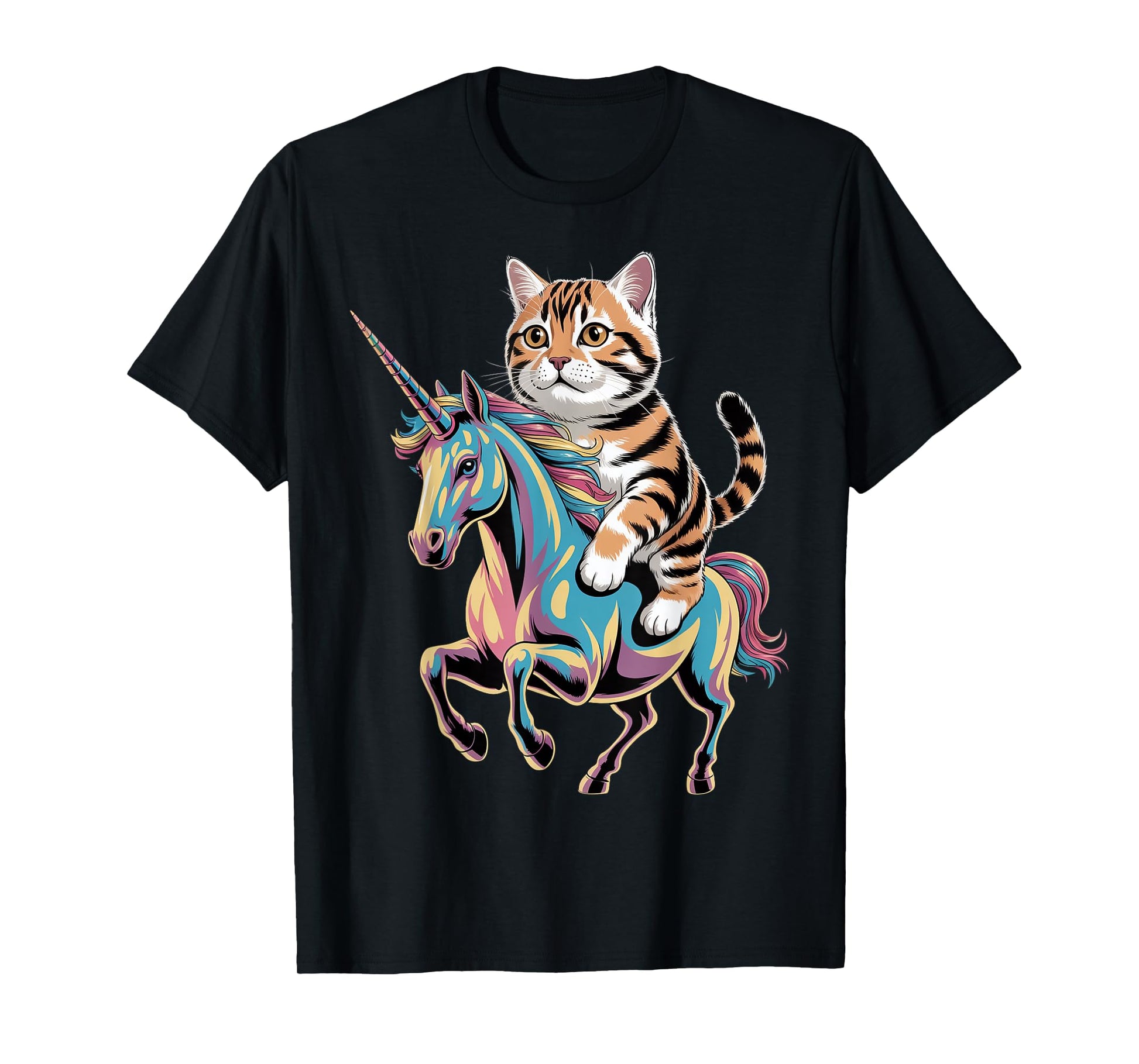 Cute Tiger Cat Riding Unicorn T-Shirt