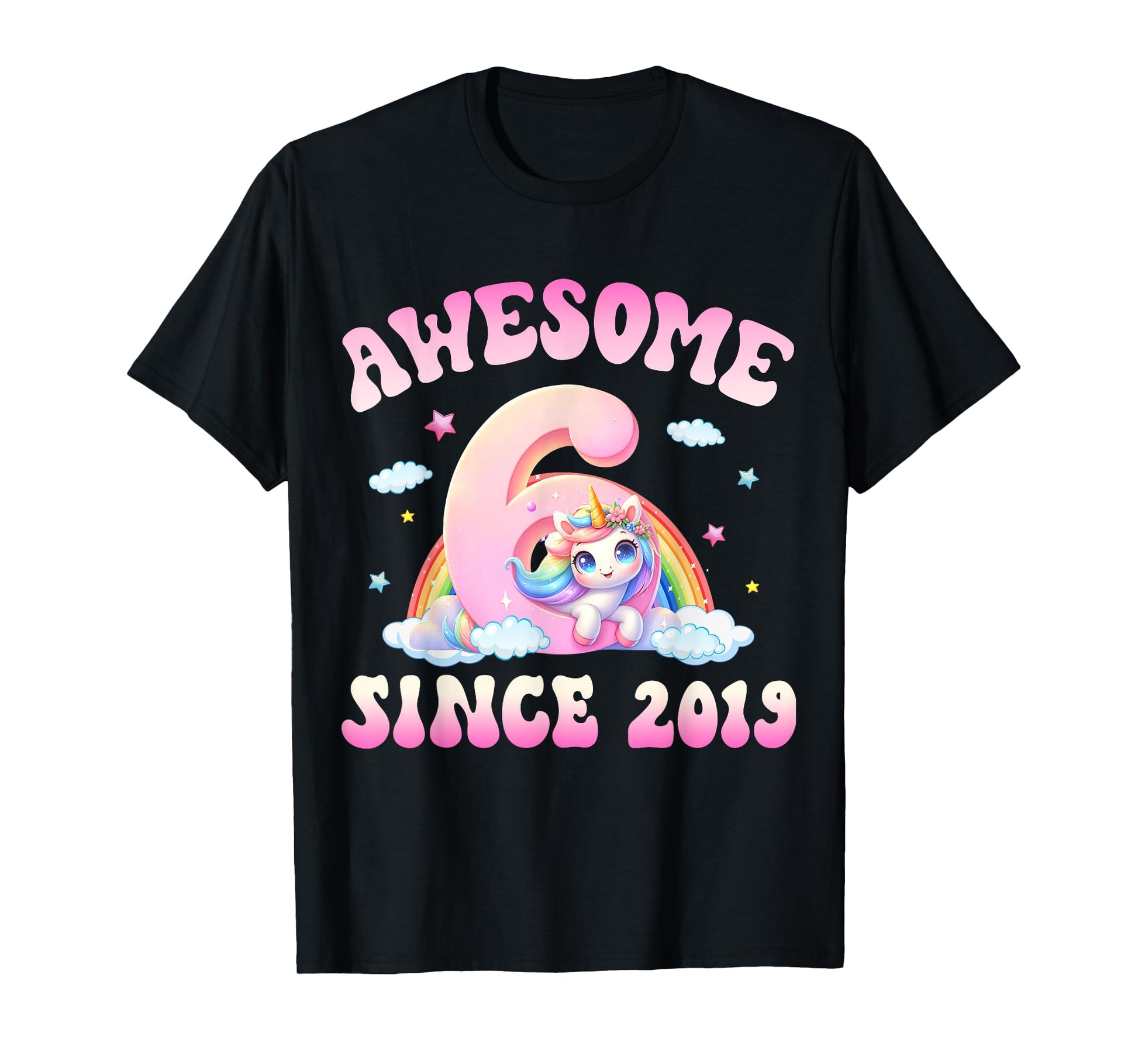 Cute Unicorn 6 Years Old Awesome Since 2019 6th Birthday T-Shirt