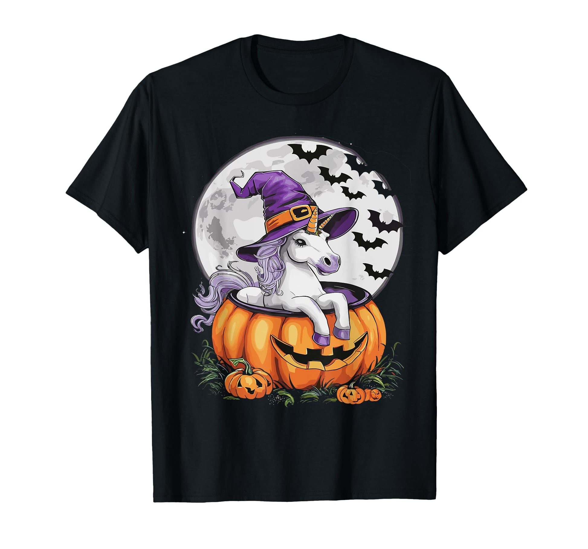 Cute Unicorn Halloween Girls Women Witchy Unicorn Halloween T-Shirt