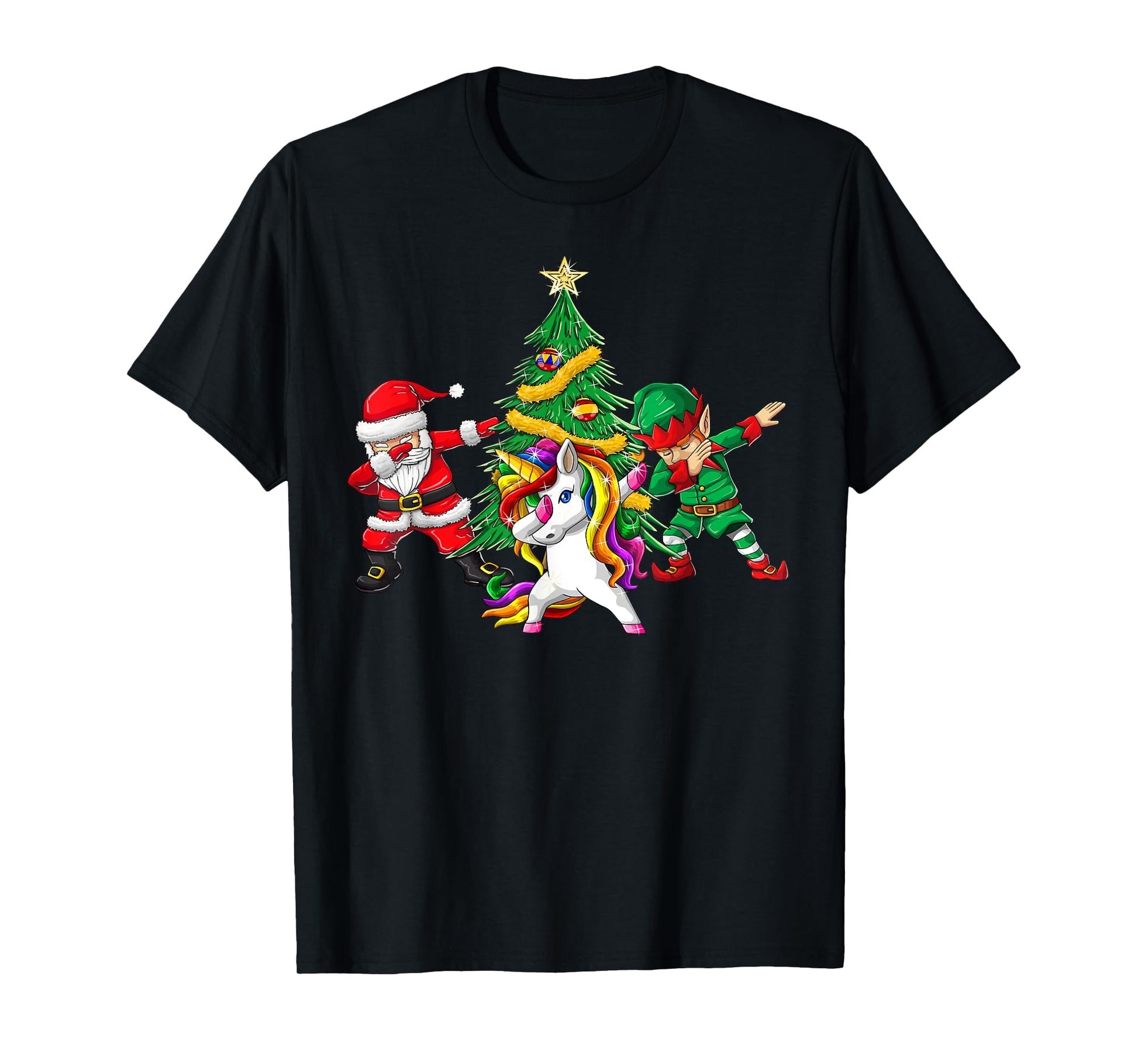 Dabbing Santa Elf Unicorn Christmas Tree Kids Boy Girl Gifts T-Shirt