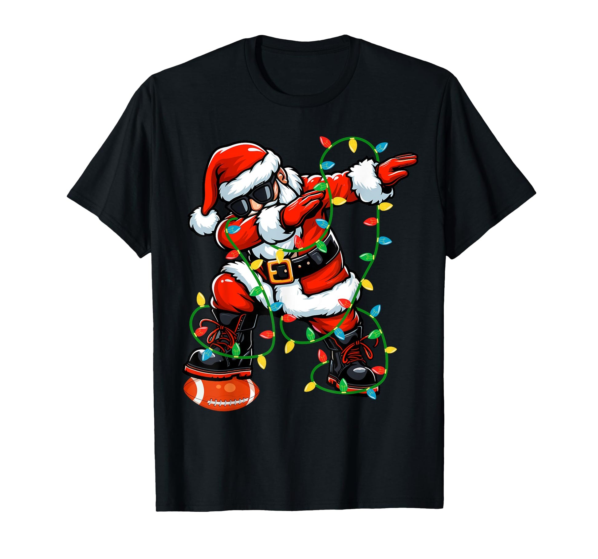 Dabbing Santa Football Christmas Lights Xmas Football Player T-Shirt