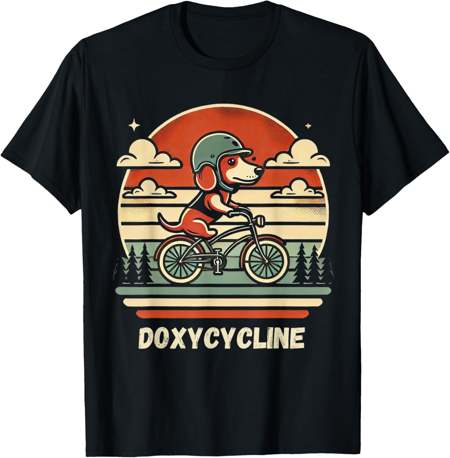 Dachshund on Bicycle Doxycycline Pharmacy Pun Dog Pharmacist T-Shirt