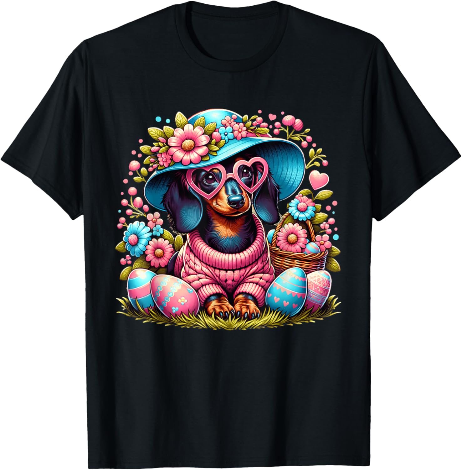 Dachshund Weiner Dog Floral Eggs Easter Day Dog Lover T-Shirt