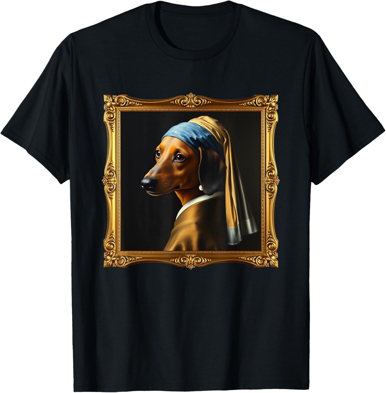 Dachshund Girl Dog with a Pearl Earring Famous Painting T-Shirt