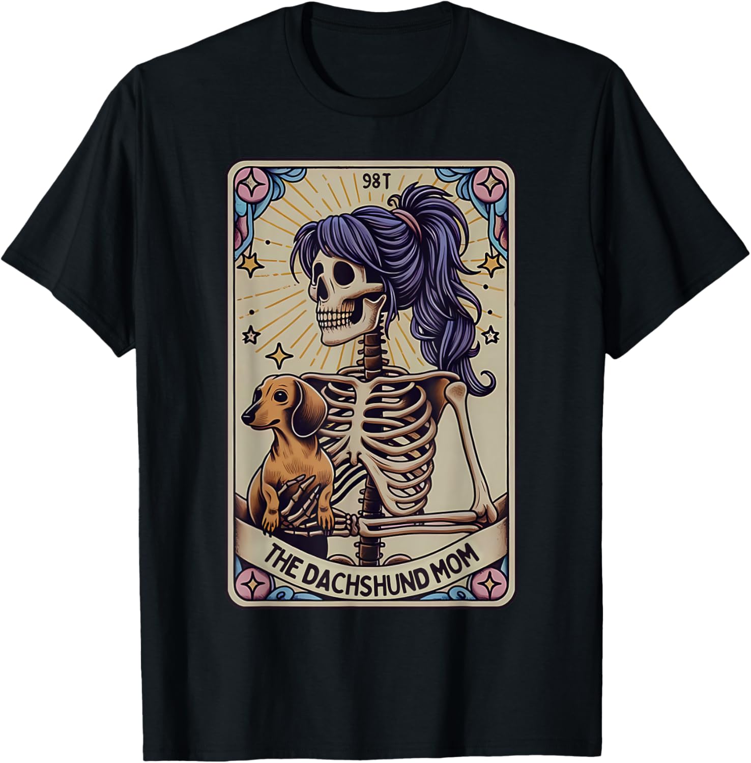 Dachshund Mom Tarot Card Skeleton Halloween Witchy Vibes T-Shirt
