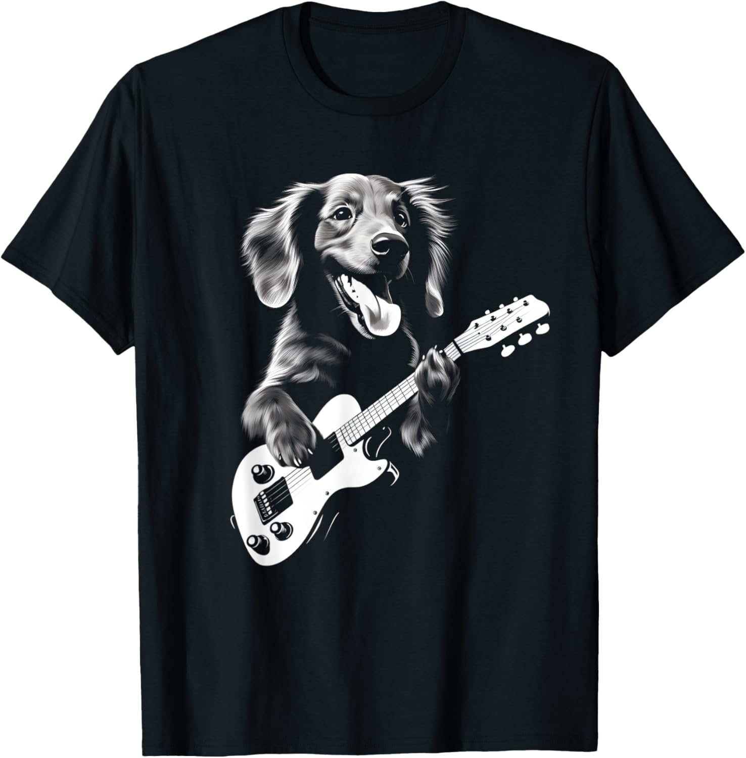 Dachshund Playing Guitar - Funny Guitar Dog T-Shirt