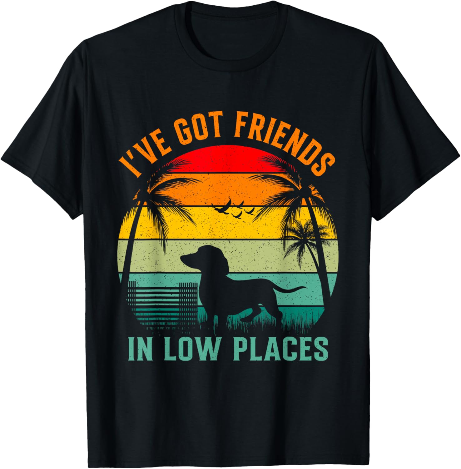 Retro Dachshund Sunset I've Got Friends Low Places Saying T-Shirt