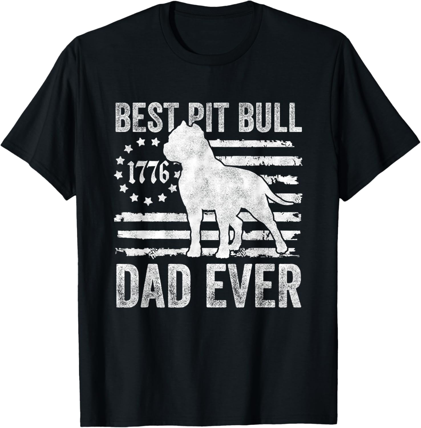 Best Pit Bull Dad Ever USA Flag 4th Of July Father's Day T-Shirt