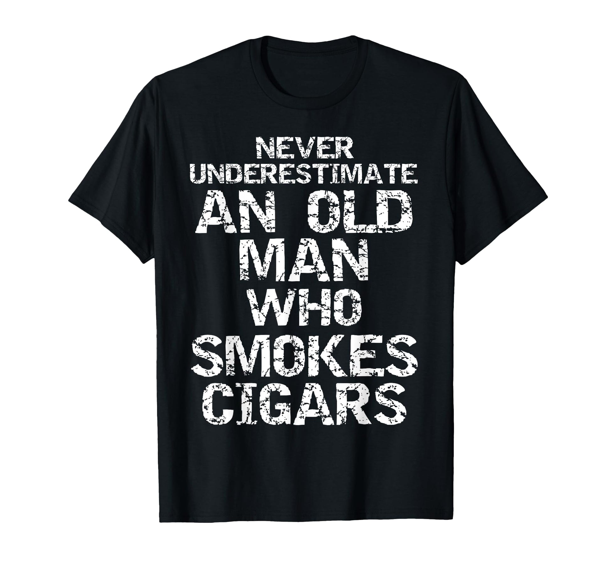 Dad Gift Never Underestimate an Old Man who Smokes Cigars T-Shirt