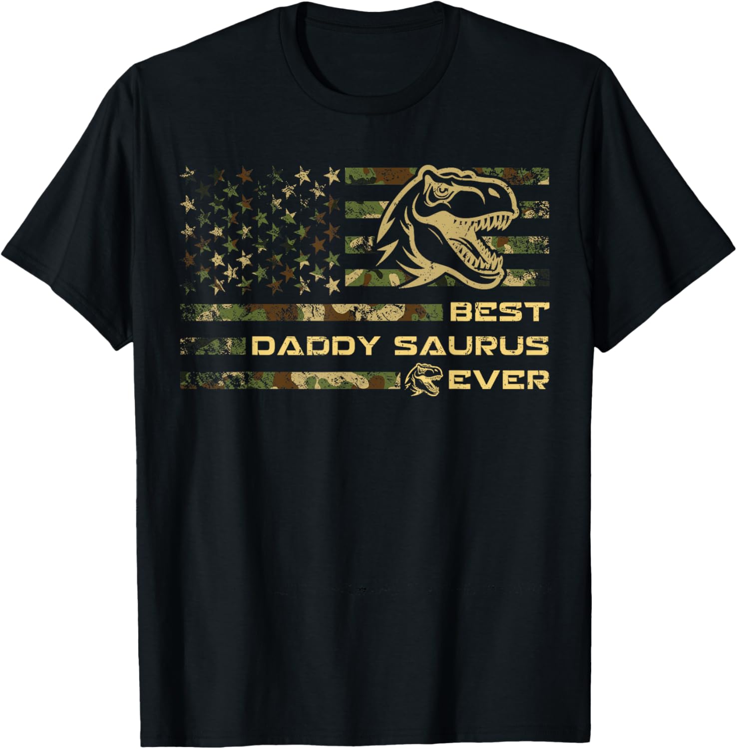 Daddysaurus T Rex Dinosaur Daddy Saurus Camo American Flag T-Shirt