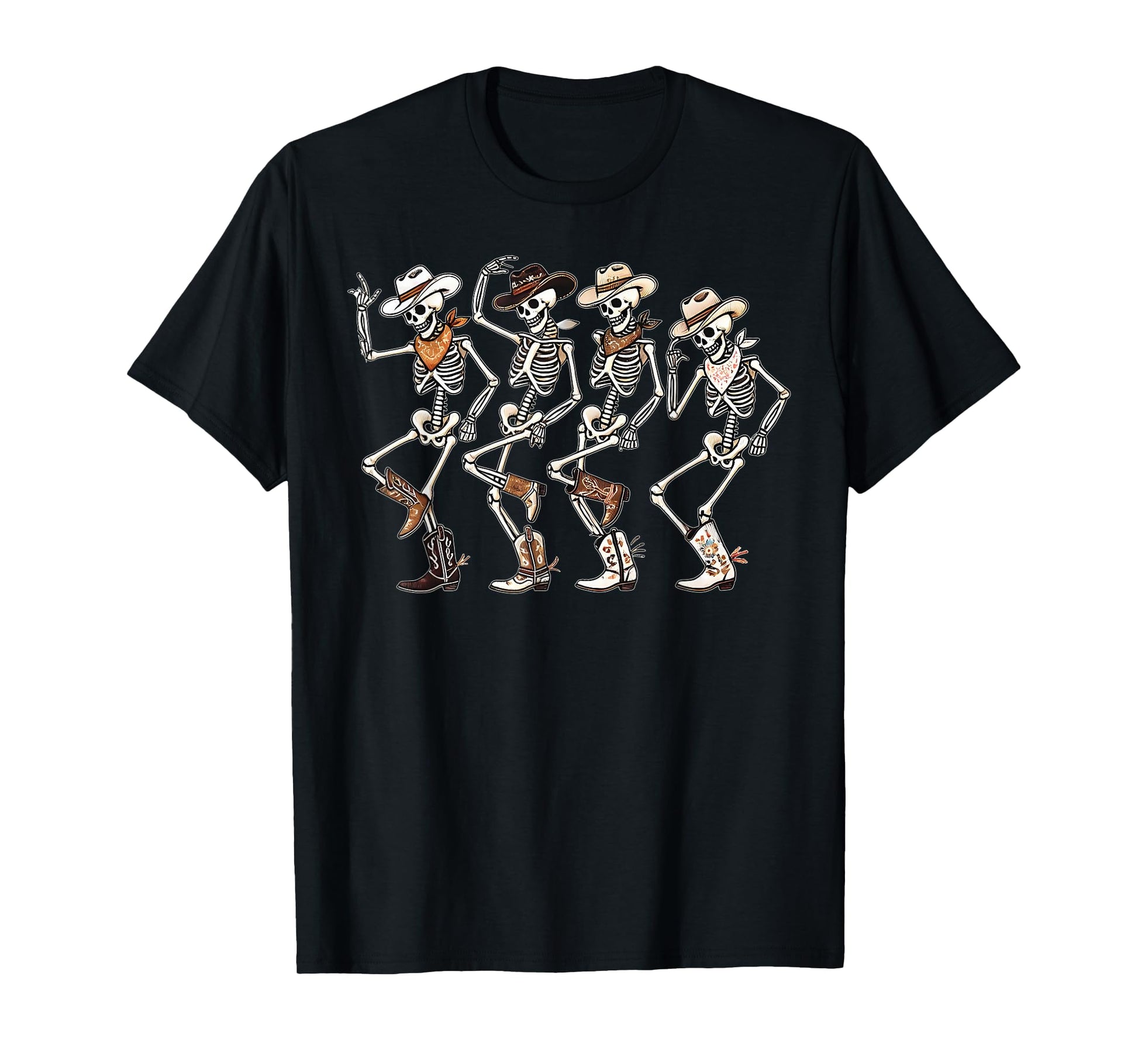 Dancing Skeleton Cowboys Western Country Rodeo Halloween T-Shirt