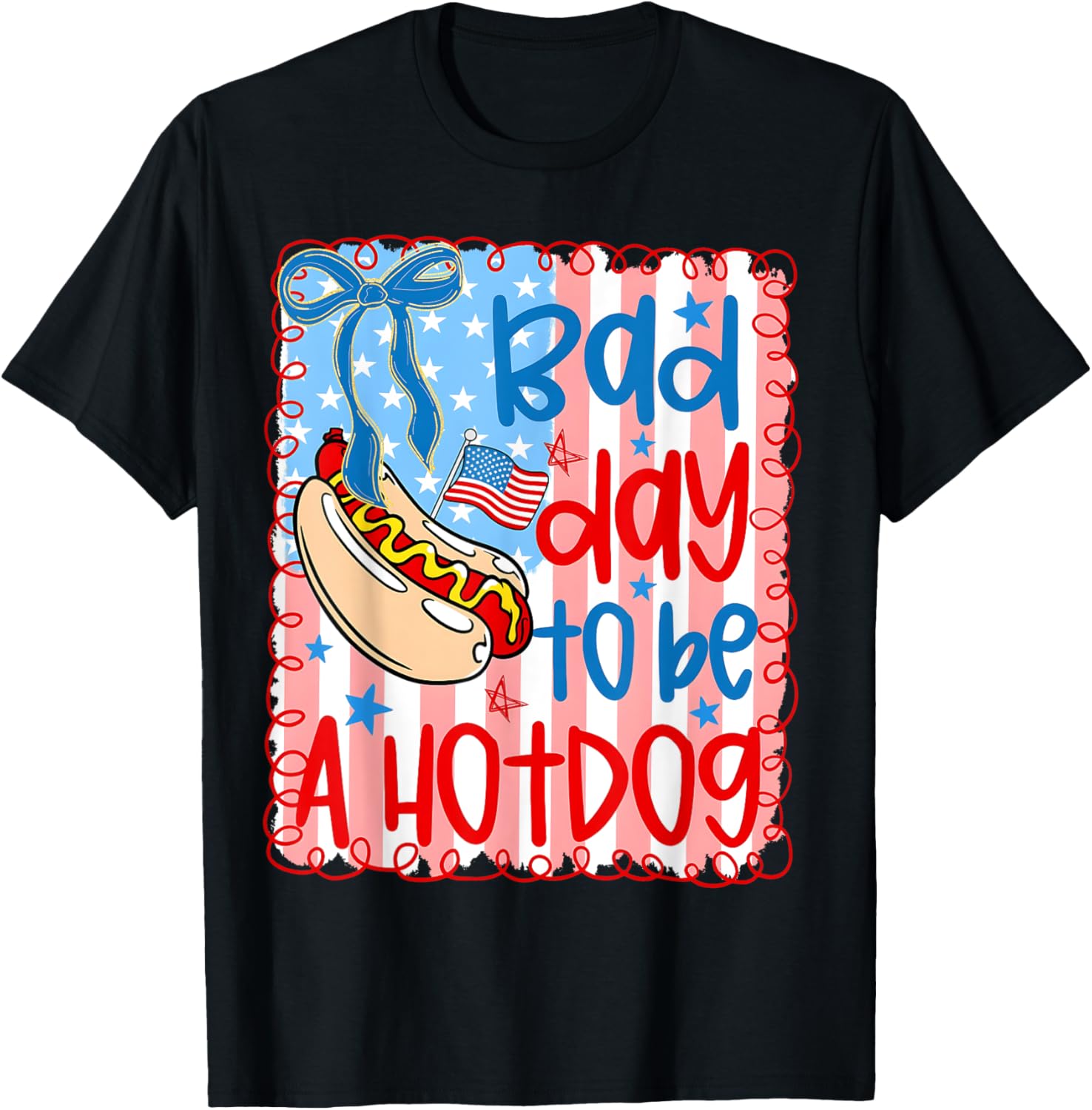 Bad Day To Be A Hot Dog 4th Of July Independence Day Bow T-Shirt