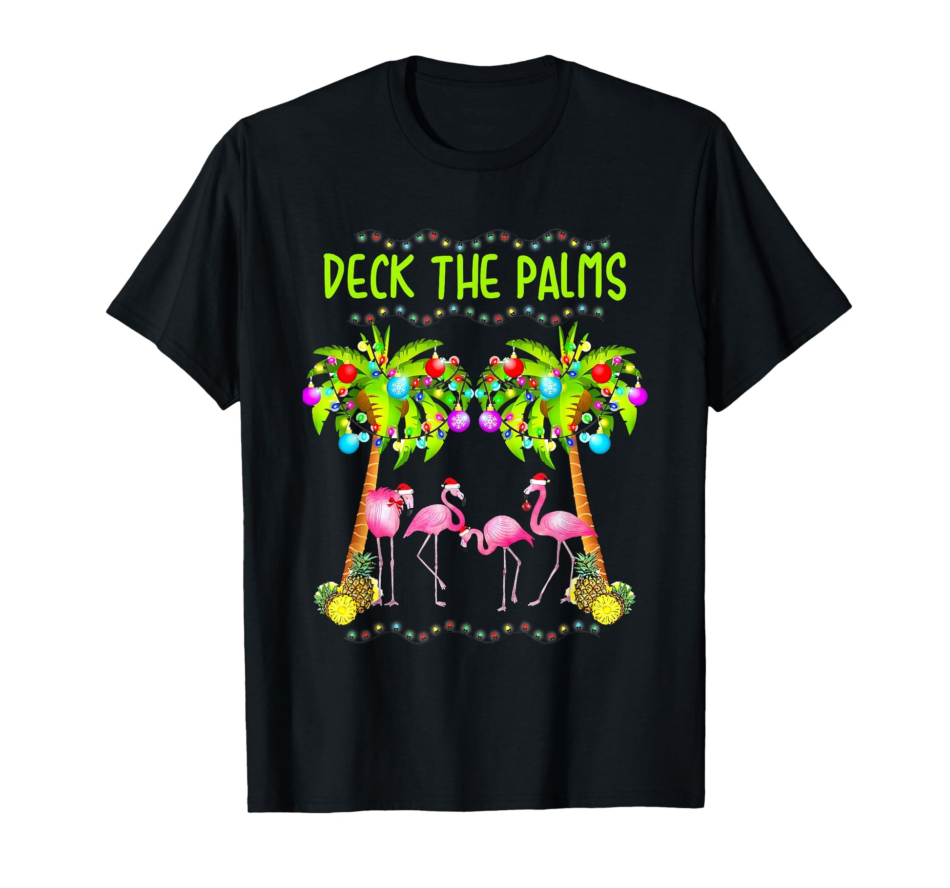 Deck The Palms Merry Flamingo Christmas Palm Tree Funny Xmas T-Shirt