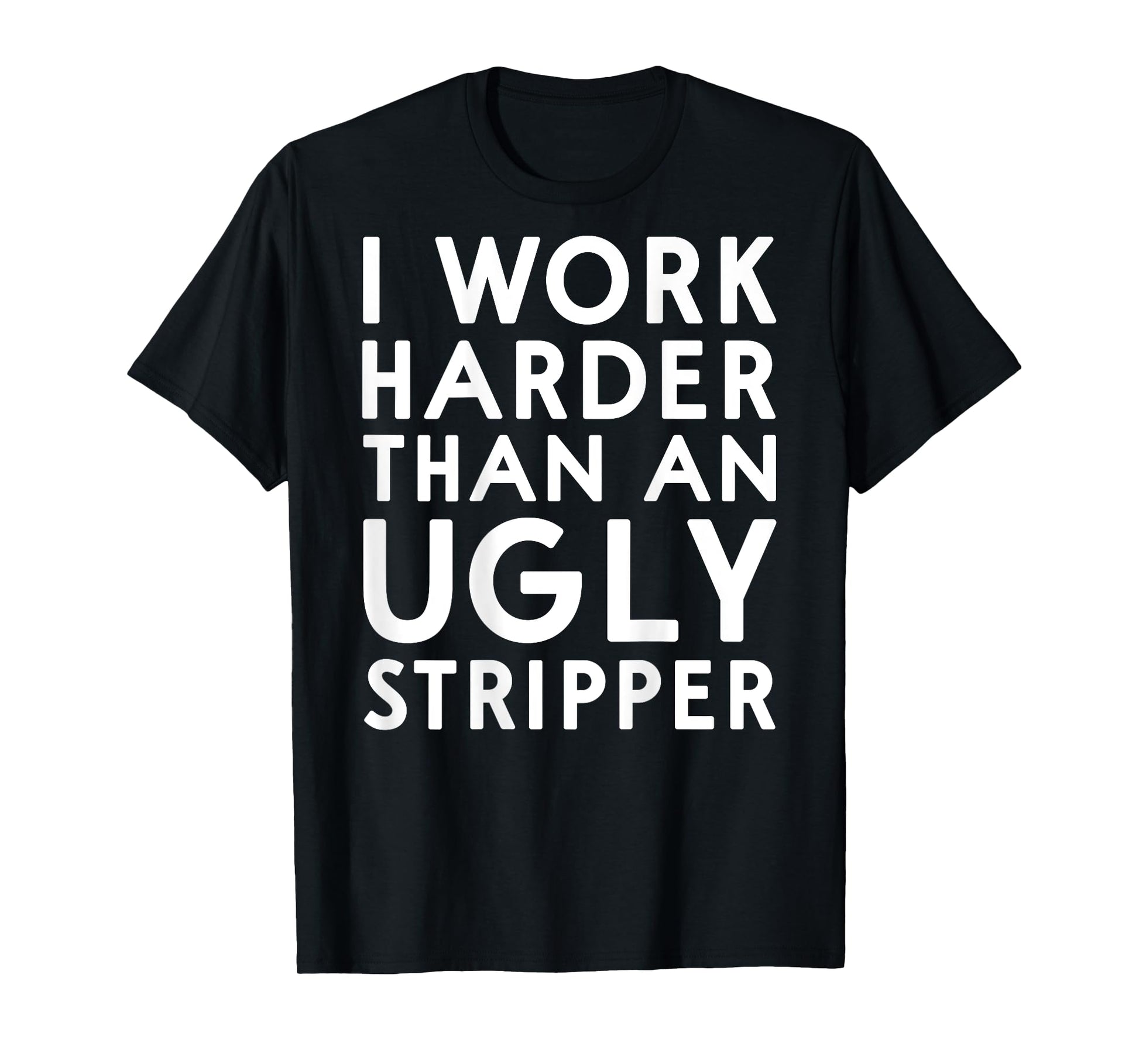 (DESIGN ON BACK) I Work Harder Than An Ugly Stripper Funny T-Shirt