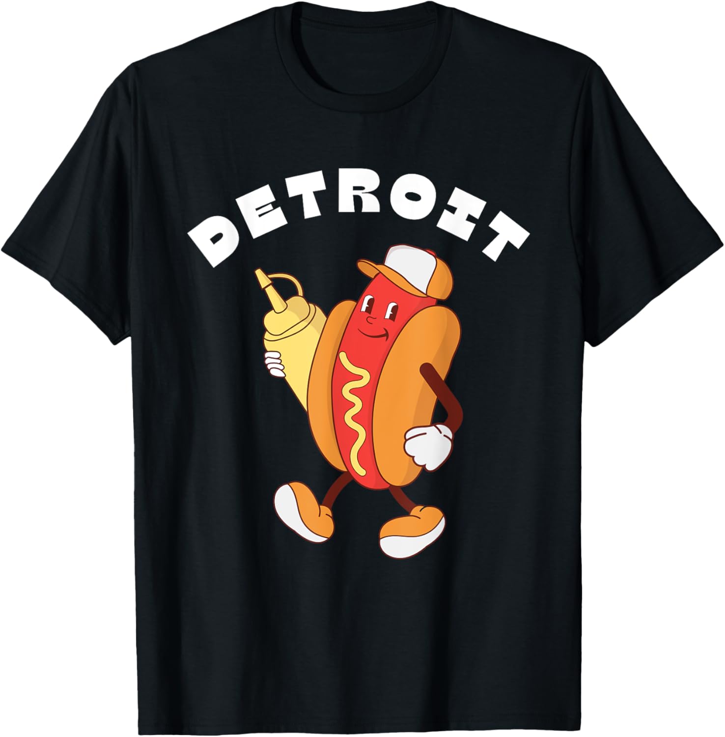 Detroit Michigan Coney Hot Dog Mascot Funny Walking Hot Dog T-Shirt
