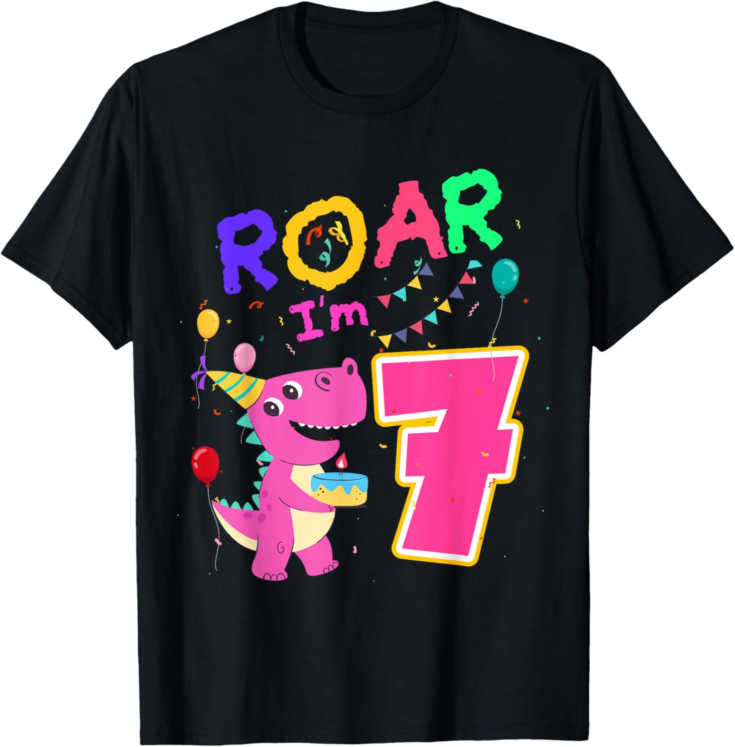 Dino Lover 7th Birthday Dinosaur Girl Party 7 Year Old B-Day T-Shirt