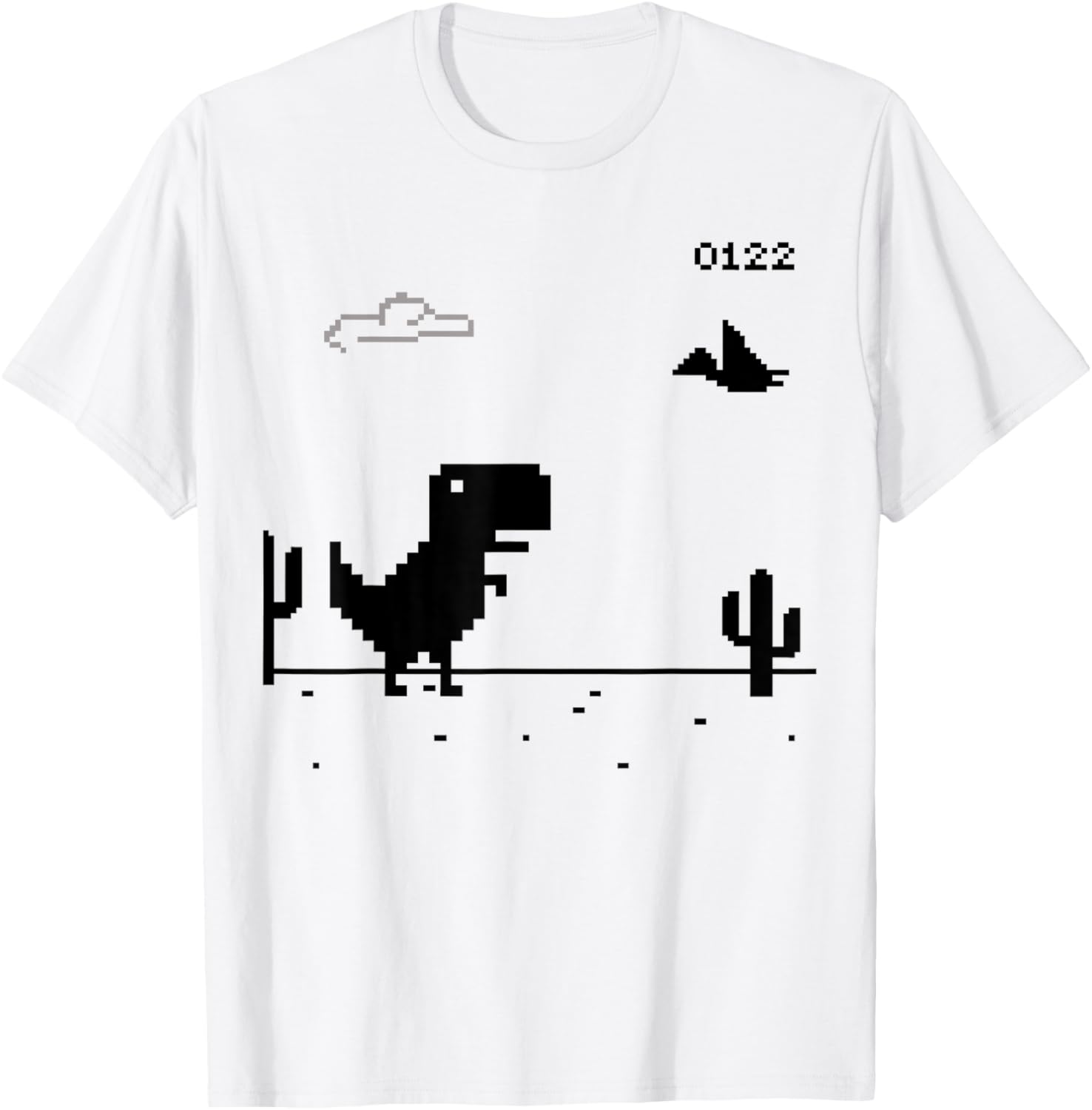 Dino T-Rex Dinosaur Pixel Game No Internet offline Funny Men T-Shirt