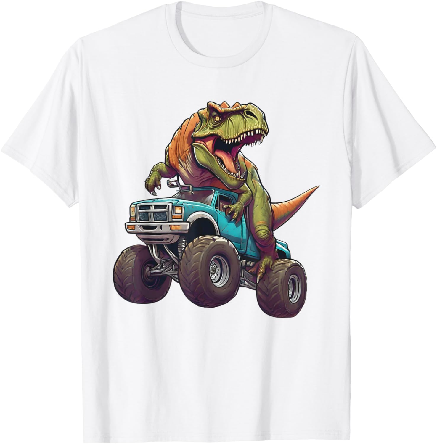 Dino Trex Dinosaur Driving Monster Truck Gift Men Women Kids T-Shirt