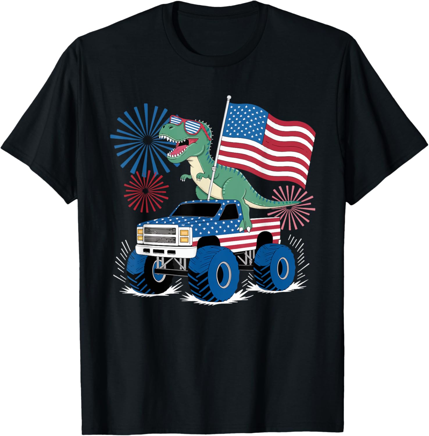 Dinosaur 4th Of July T Rex Dinosaur Truck Dino T-Shirt
