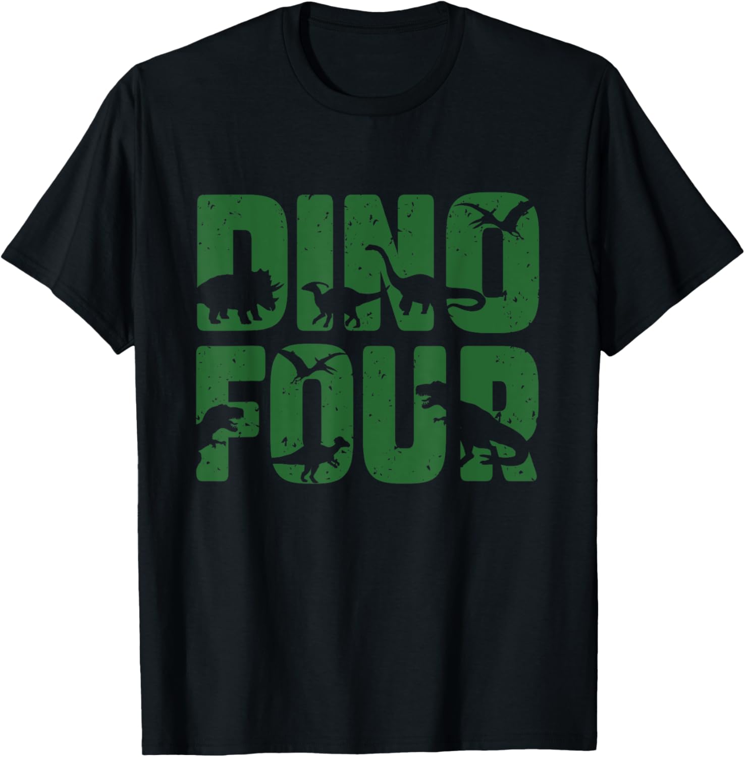 Dinosaur Birthday Boy And Girl Gift Kids 4th Birthday Dinosaur Family T-Shirt Black Small Modern Classic Fit T-Shirt Crew Neck Short Sleeve T-Shirt