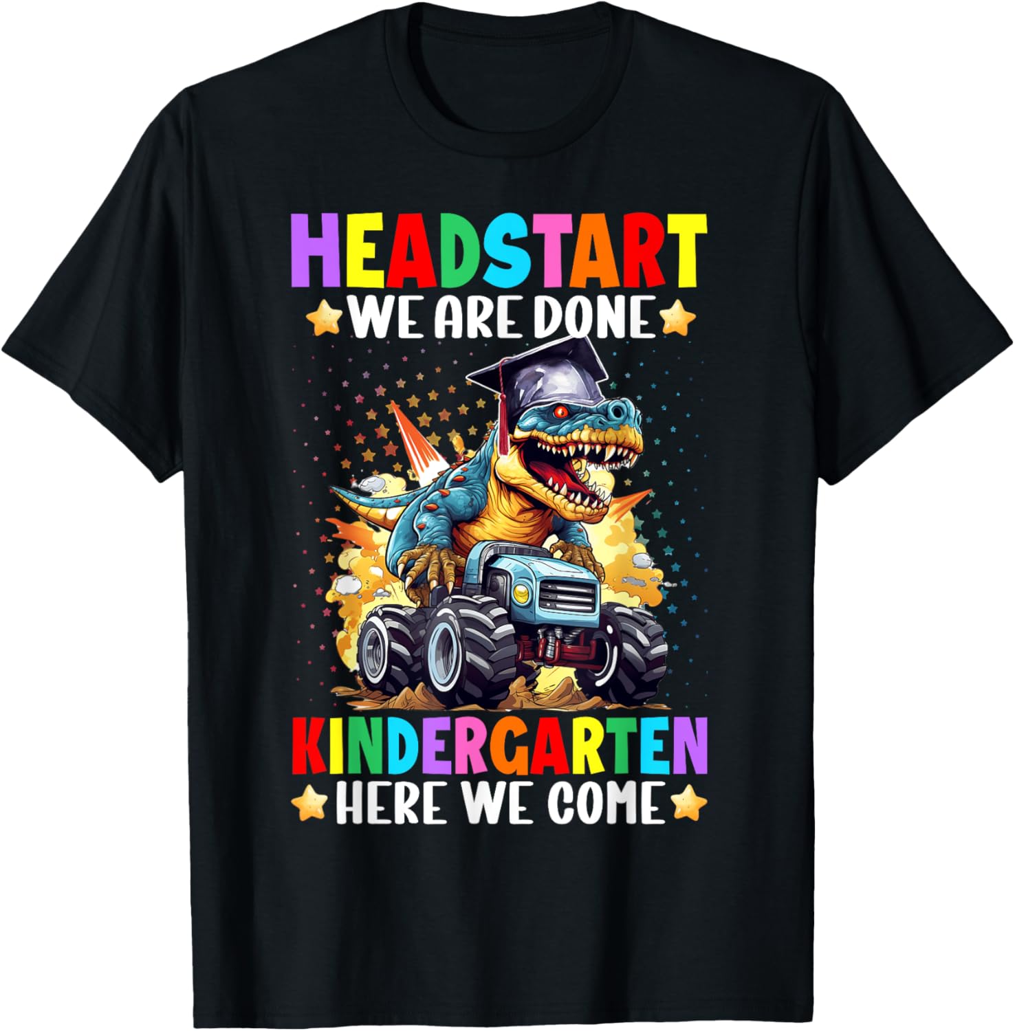 Dinosaur Headstart We Are Done Kindergarten Here We Come T-Shirt