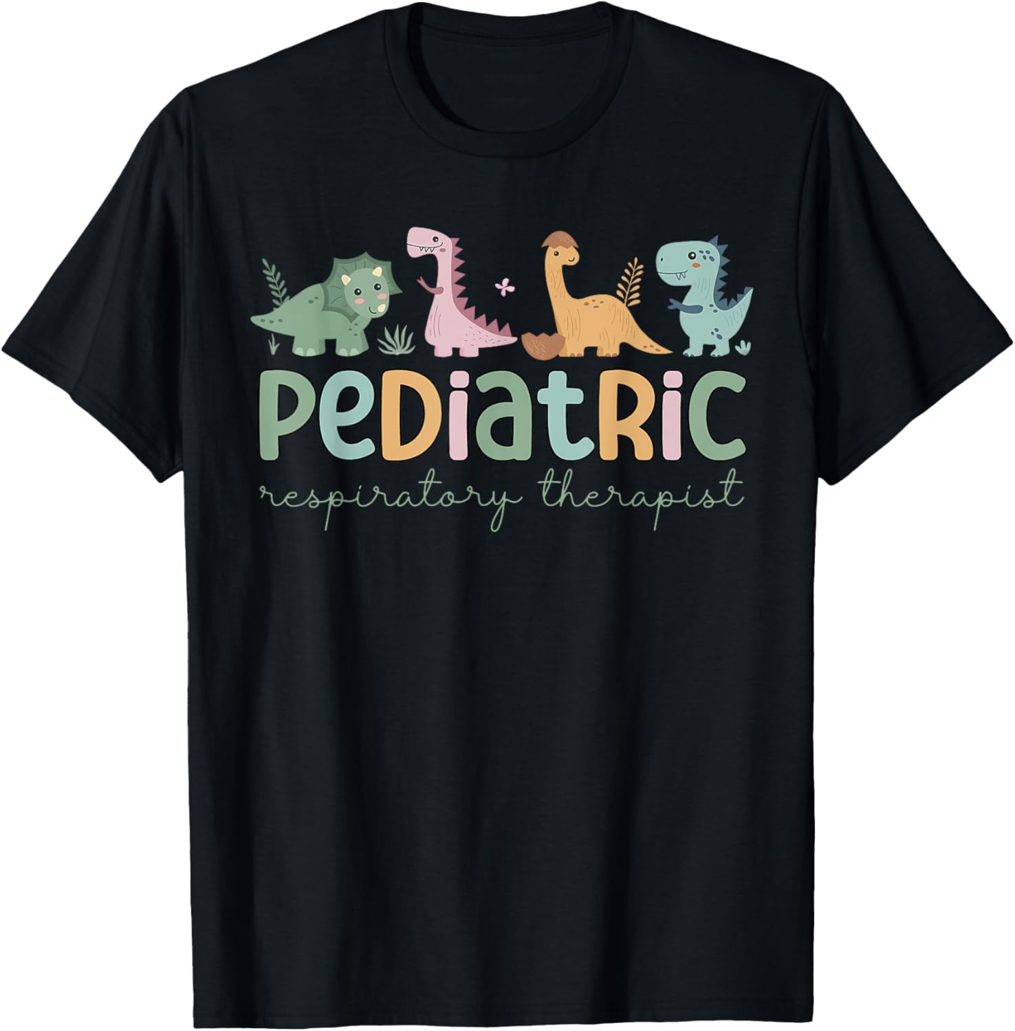 Dinosaur Pediatric Respiratory Therapist PEDS PICU RRT Crew T-Shirt