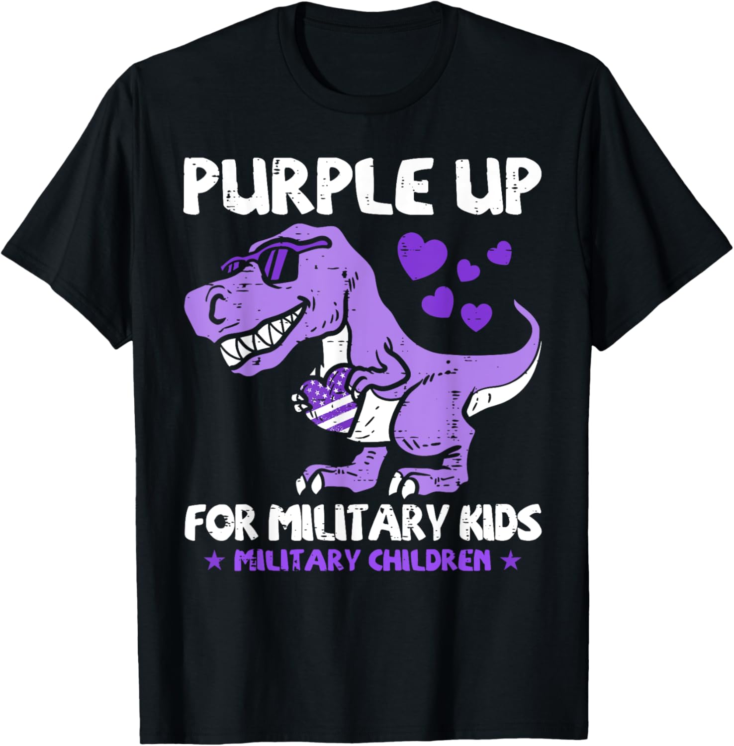 Dinosaur Purple Up for Military Kids Month Military Child T-Shirt
