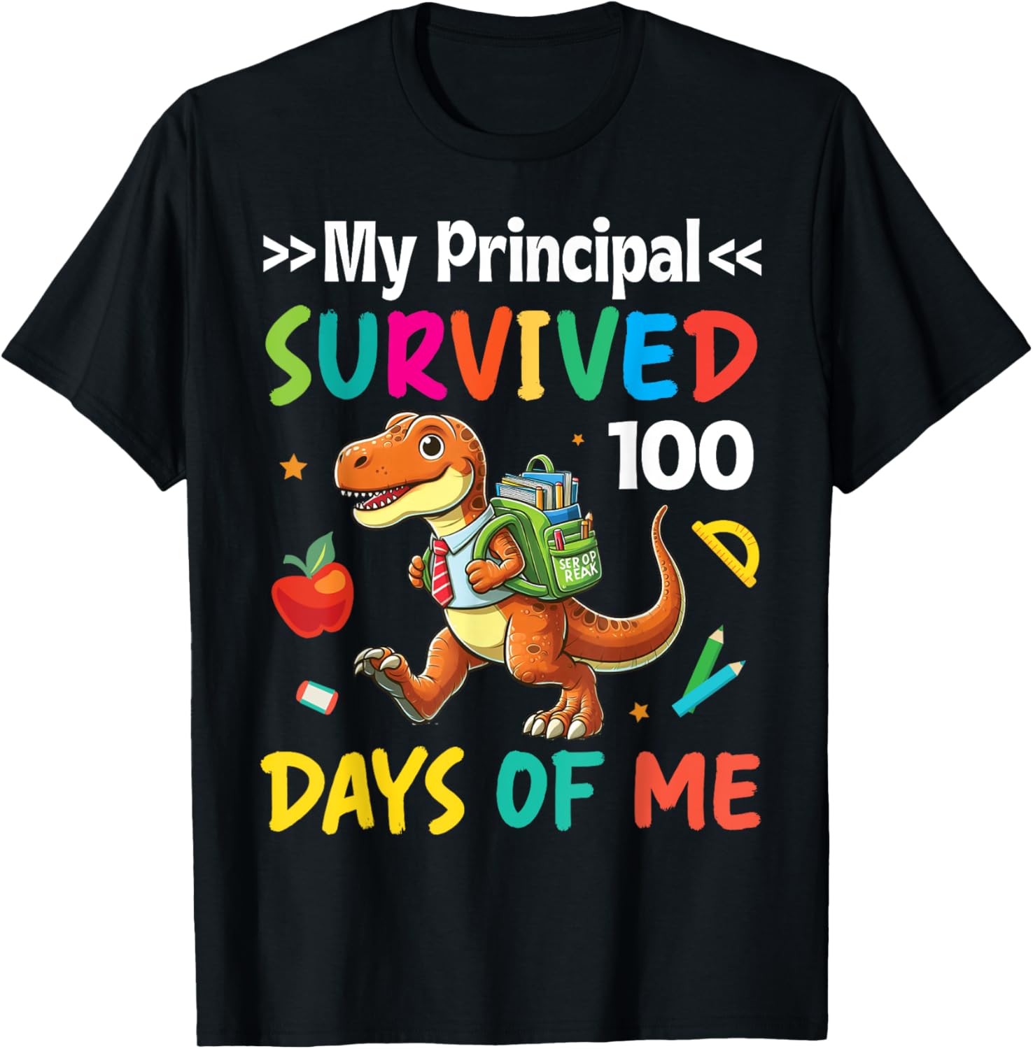 Dinosaur Student My Principal Survived 100 Days of Me School T-Shirt