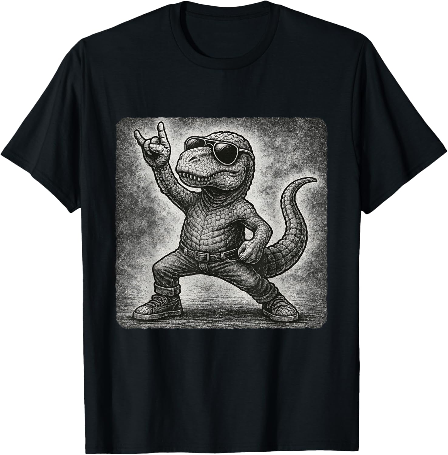 Dinosaur Sunglasses Rock Music Funny Retro Horns Up T-Shirt