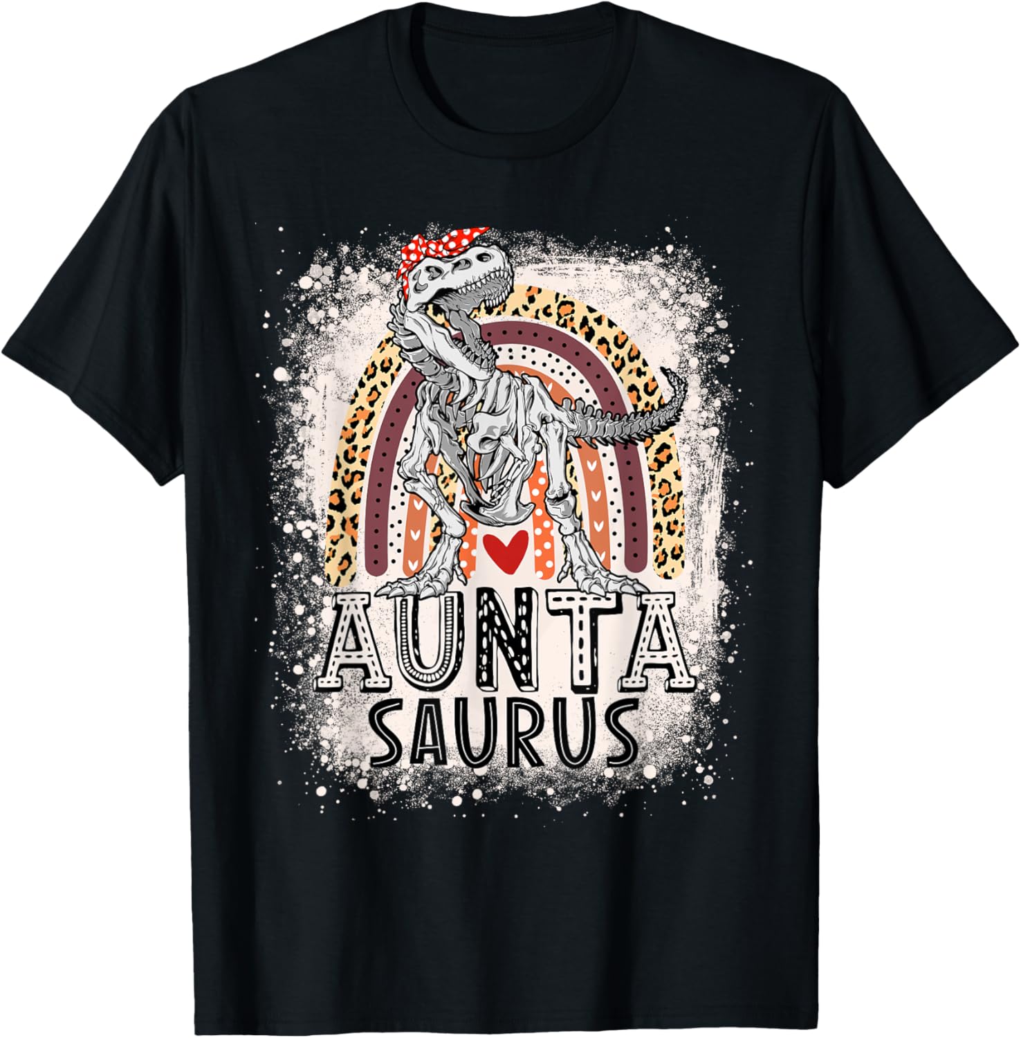 Dinosaur T Rex Leopard Rainbow Auntasaurus Aunta Aunt Saurus T-Shirt